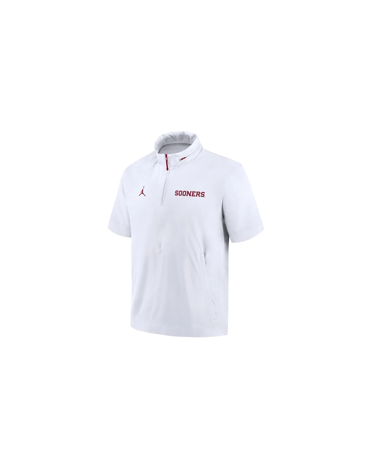 This Oklahoma Sooners 2024 Sideline Coach half-zip jacket by Jordan delivers premium comfort on game day without the added bulk of a long-sleeve hoodie. Its blended material features a lightweight feel, four-way stretch flexibility and an understated Oklahoma Sooners wordmark. The hood provides added coverage and conveniently fits inside the collar when not in use.