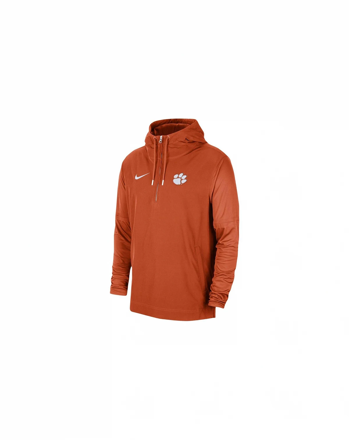Match the Clemson Tigers coaching staff with this 2023 Coach jacket from Nike. It features an adjustable hood, zippered side vents and a half-zip neckline for customizable comfort. The bold Clemson Tigers graphics and colorway make it easy to boast your allegiance while you cheer the team to victory.