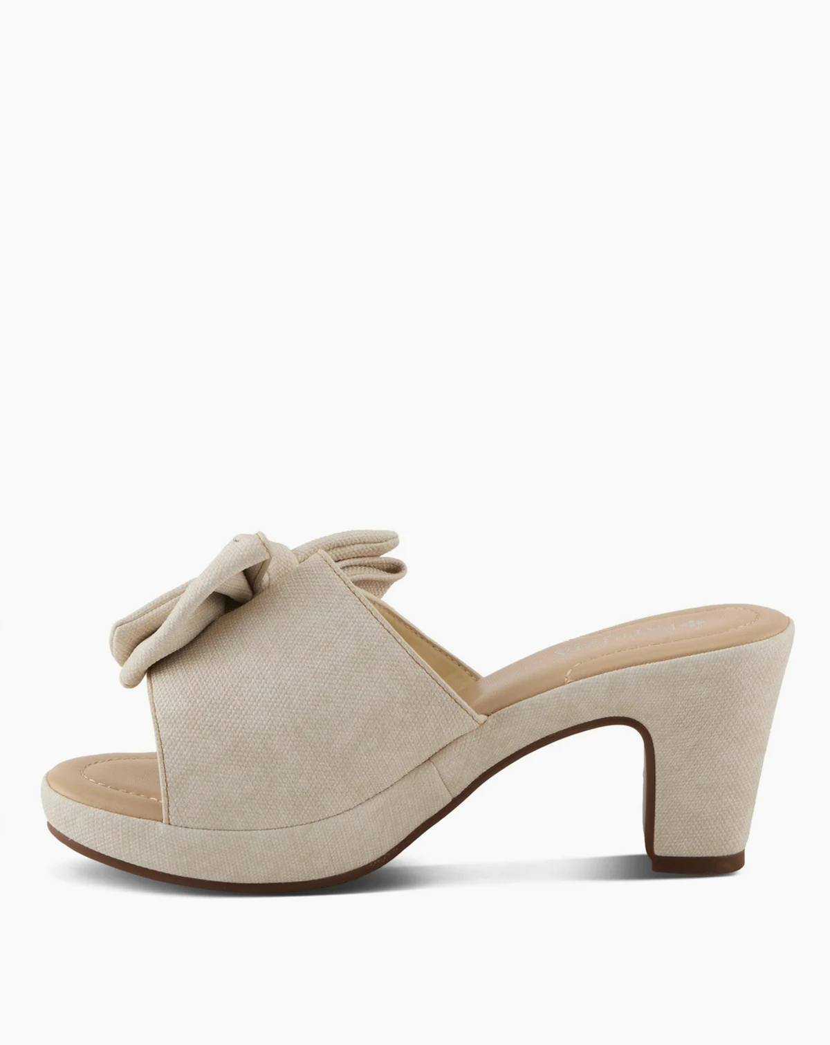 Add a bold twist to your warm-weather wardrobe with the Patrizia NORMAJEAN heeled slide sandal. Featuring a soft denim-look upper and a statement oversized bow, this playful one-band silhouette combines trend-forward design with cushioned comfort. The padded footbed, balanced platform, and sturdy block heel make it a versatile choice for both casual days and elevated evenings.