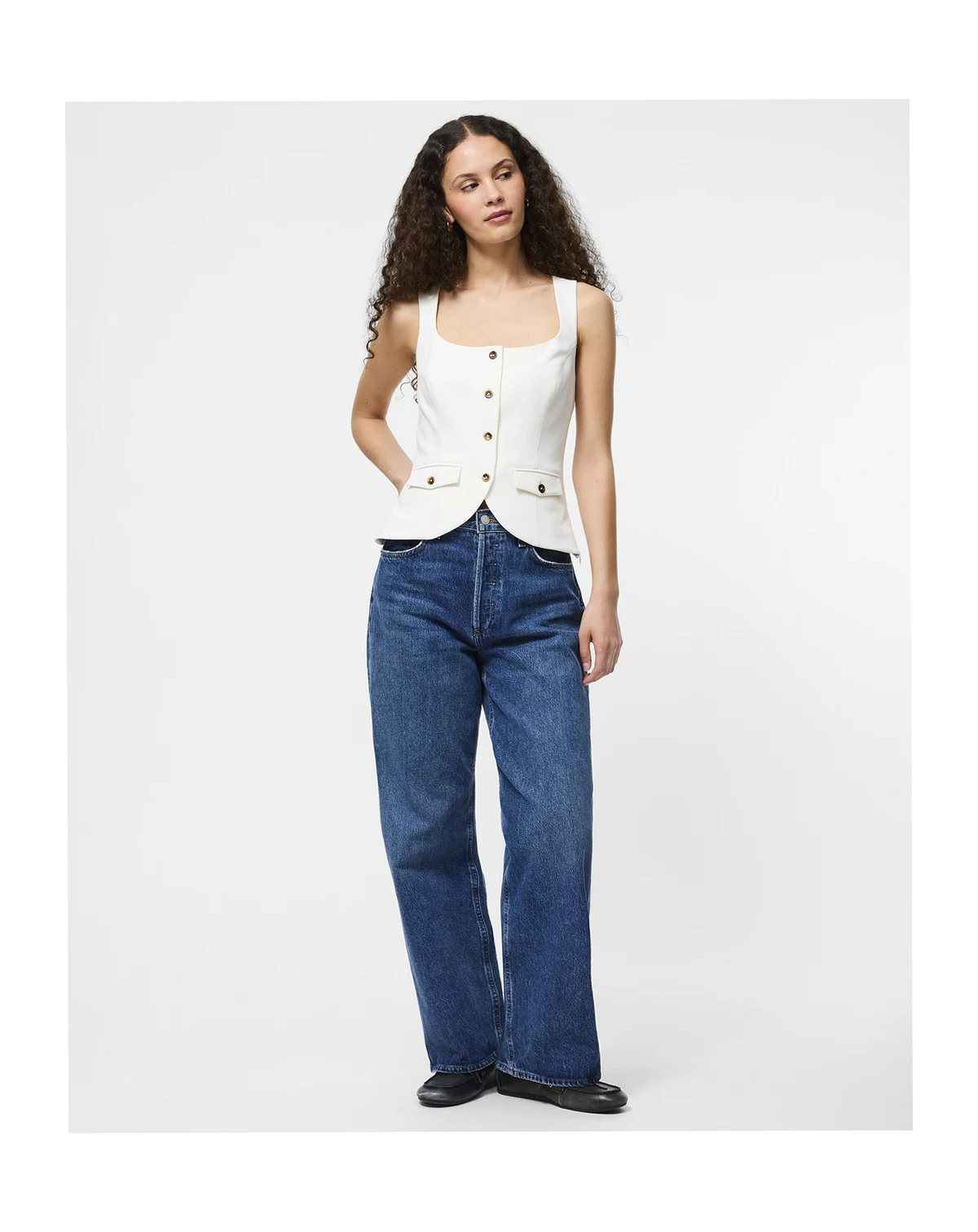 Add a modern twist to your wardrobe with this French Connection strapless button-down top, designed for both style and function. Fully lined for comfort, it features a square neck neckline, center front button closure, and two functional waist pockets.