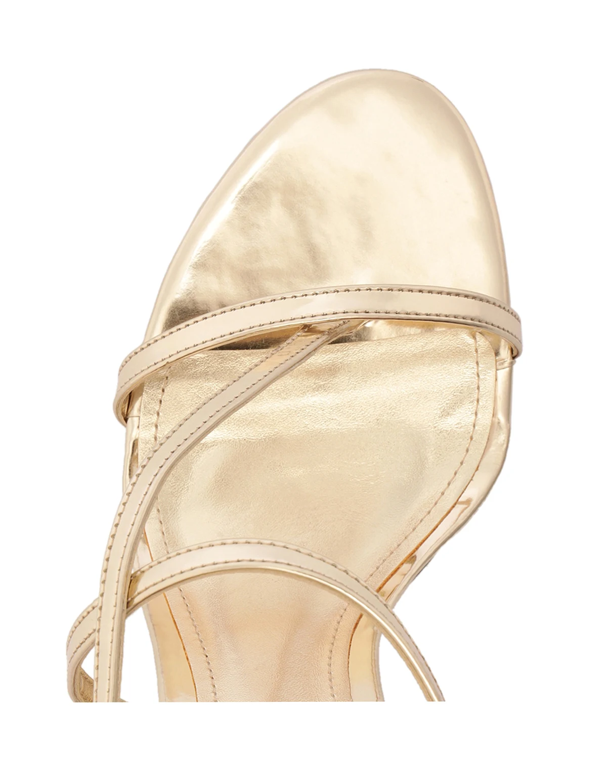 For nights when less is more, Azure delivers. This high stiletto sandal features ultra-thin straps that wrap and weave up the foot in gleaming metallic leather. The open design gives a barely-there feel, while the soaring heel keeps things unapologetically bold. A gold buckle closure seals it with a flash. Slip them on when you're going all in on attitude.