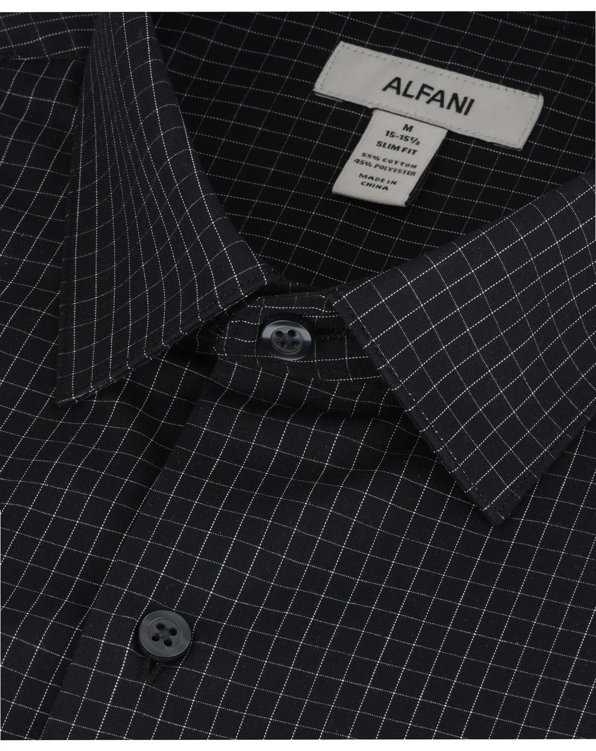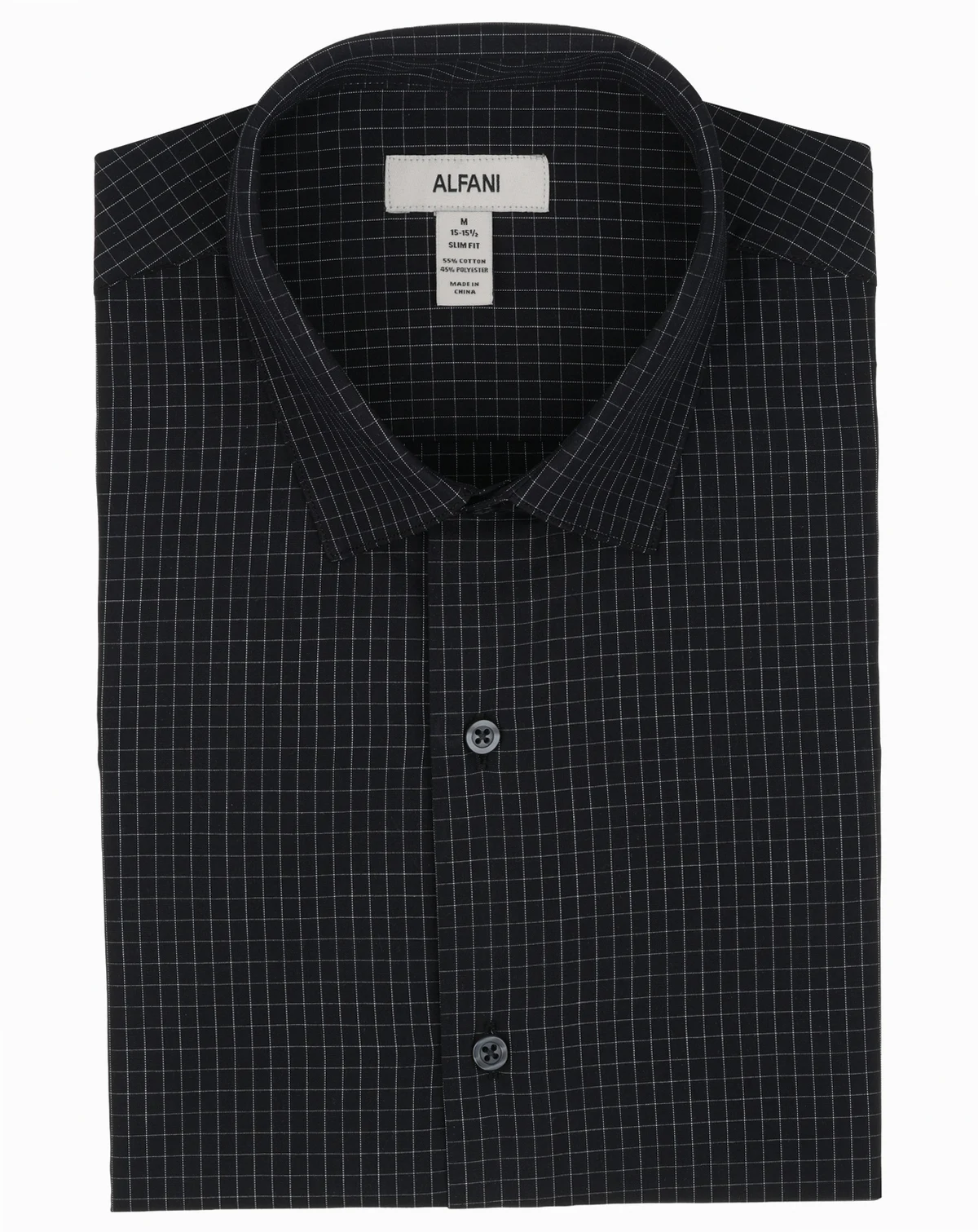 Stand out with subtle pattern play in this Alfani dress shirt featuring a refined grid design and streamlined slim silhouette. A spread collar, mitred cuffs, and easy-care construction maintain crisp, tailored appeal.