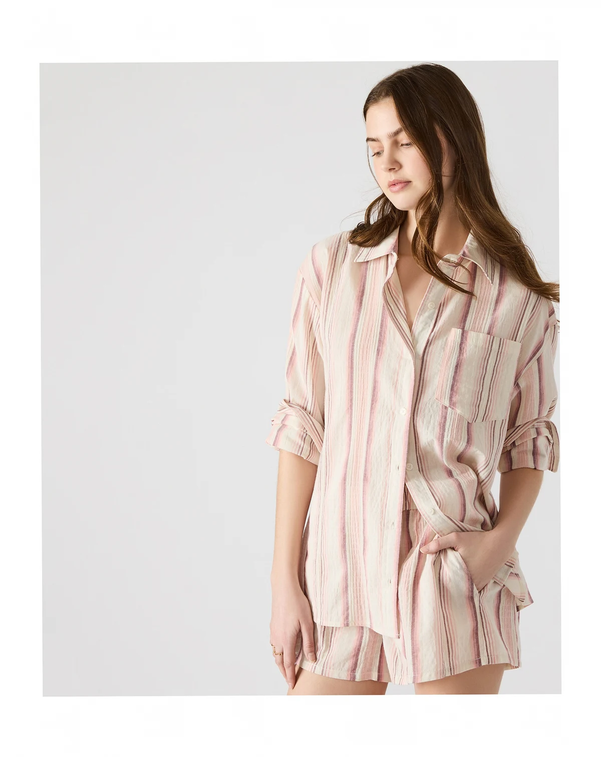 The oversized fit of Steve Madden's striped cotton gauze shirt means you can wear it solo or layered over tanks and camisoles.