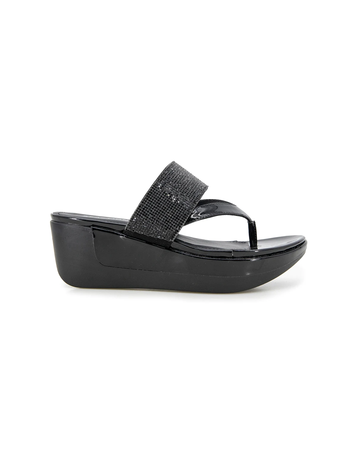 The Kenneth Cole Reaction Pepea Cross Jewel is the perfect mix of comfort and glam with its contoured footbed wedge and jeweled instep.