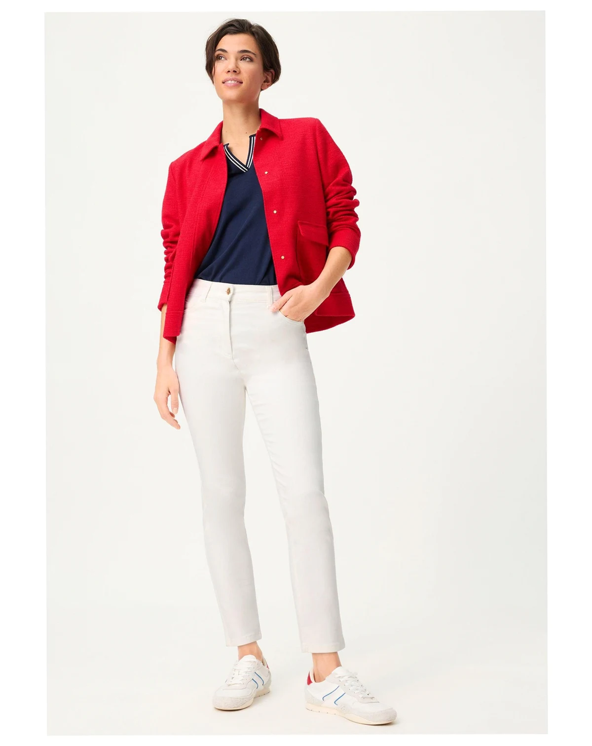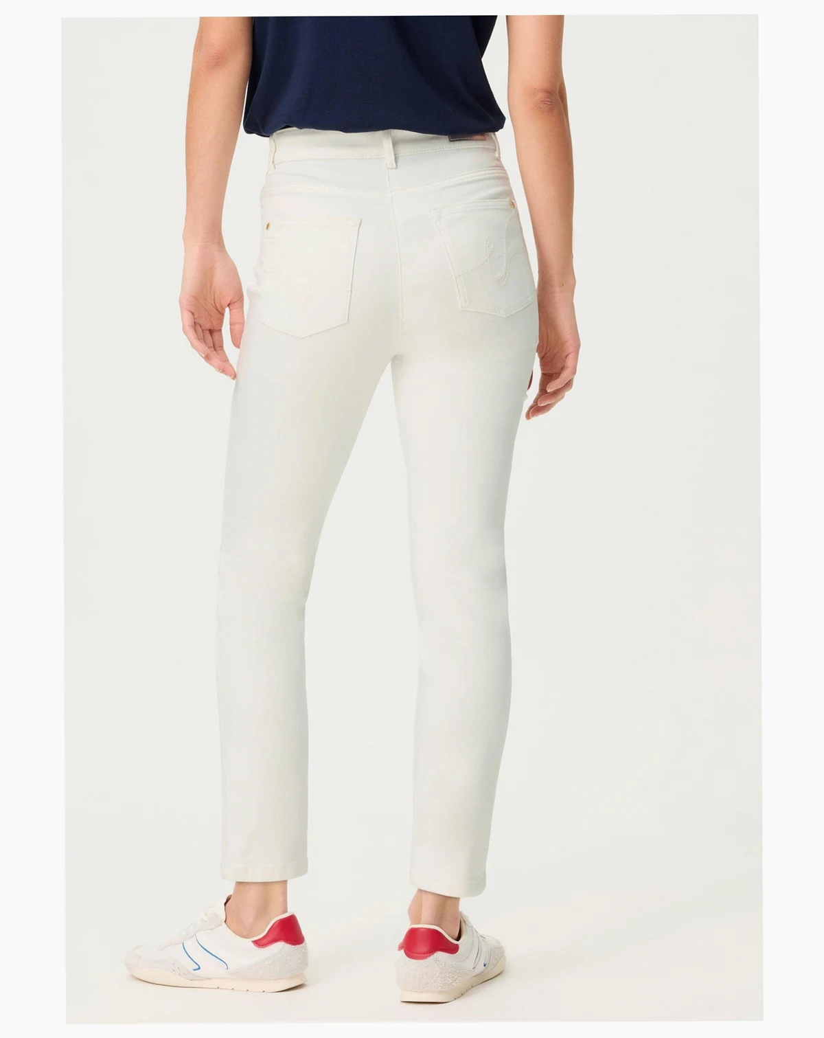 Designed in the flattering Mona Slim fit, they create a streamlined look that s easy to dress up or down.; Finished with a timeless 5-pocket design and a cropped length, they are a versatile staple for modern styling. Approx. inseam : 28 inches.; Total Length(apx.) - 38 in. Inseam Length(apx.) - 28 in. Leg Opening - Straight Closure type - BTN + ZIP Belt Loops - Yes Waist Fit - Mid Rise