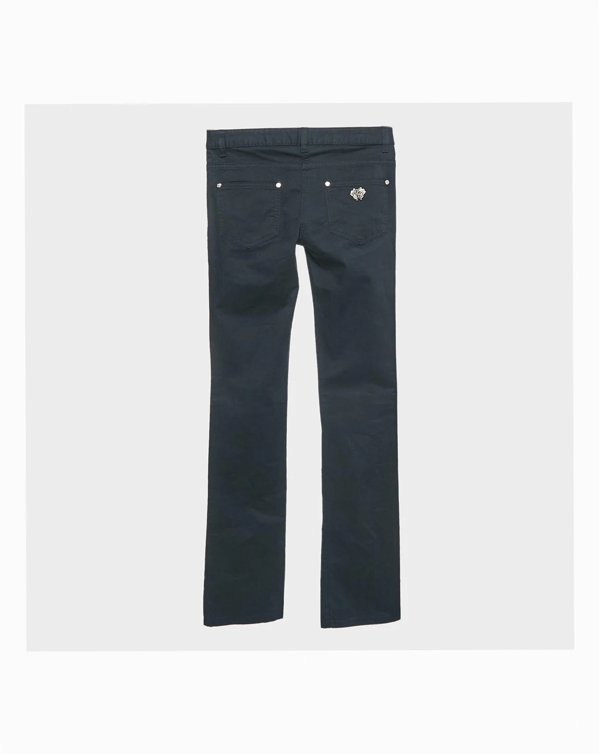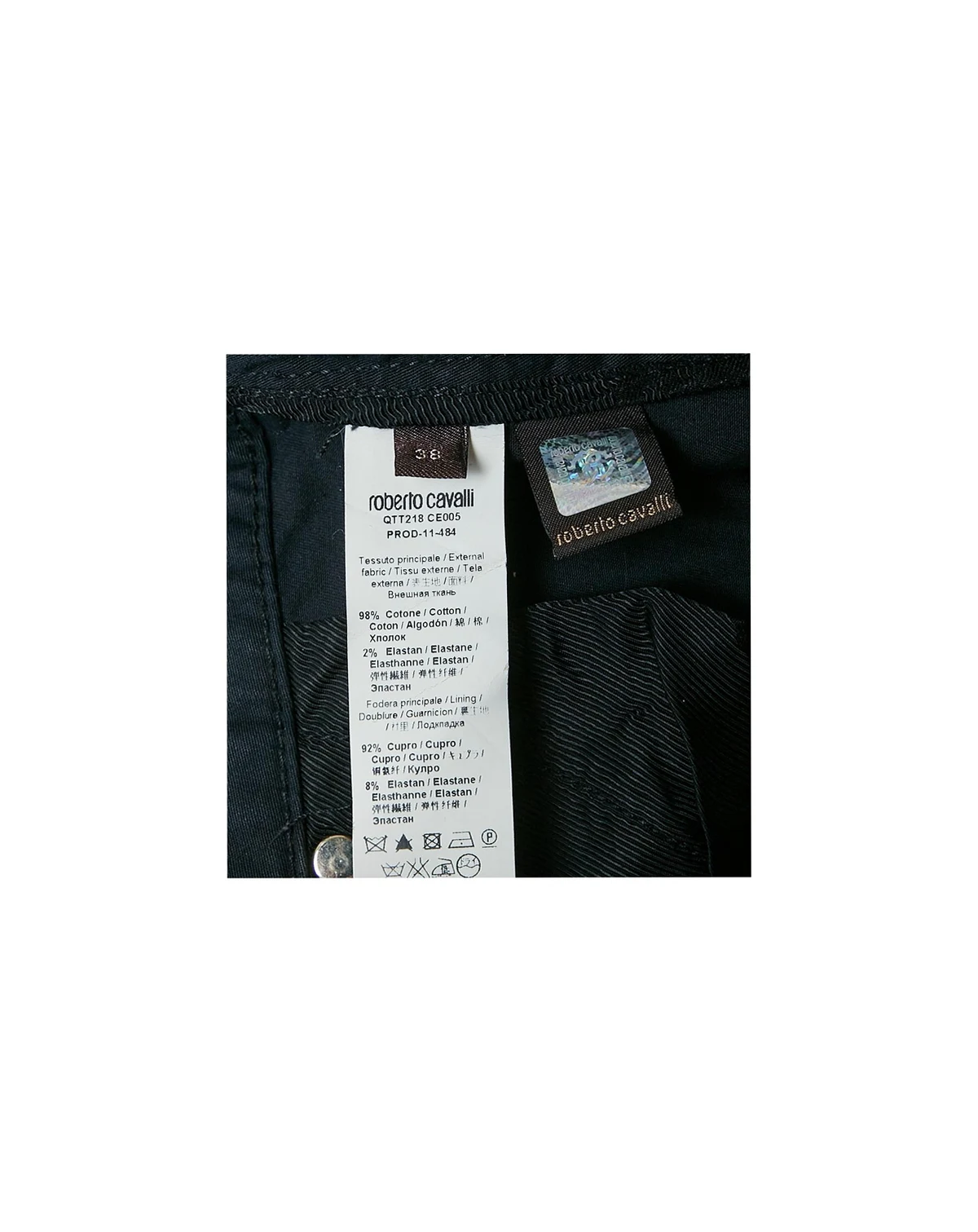 Elevate everyday dressing with these Roberto Cavalli skinny pants tailored from stretch cotton for a sleek fit. The deep navy hue and minimal detailing create a polished look ideal for pairing with statement tops and heels for a stylish finish.