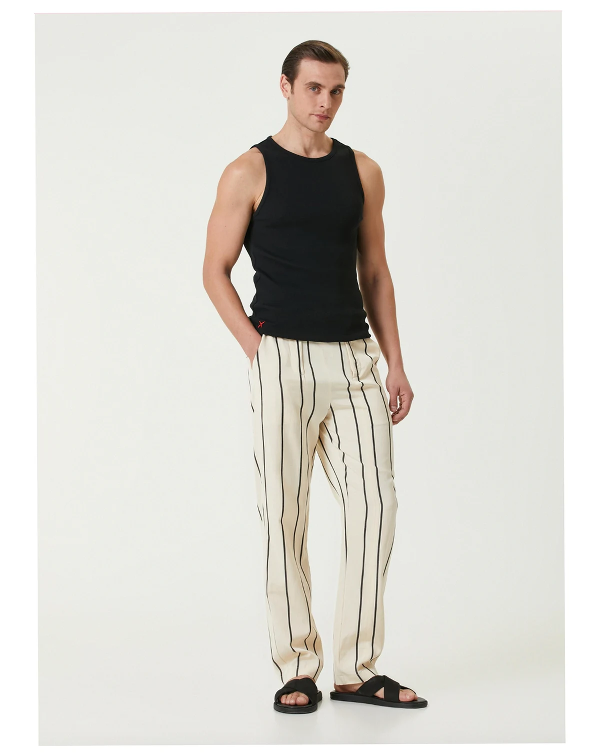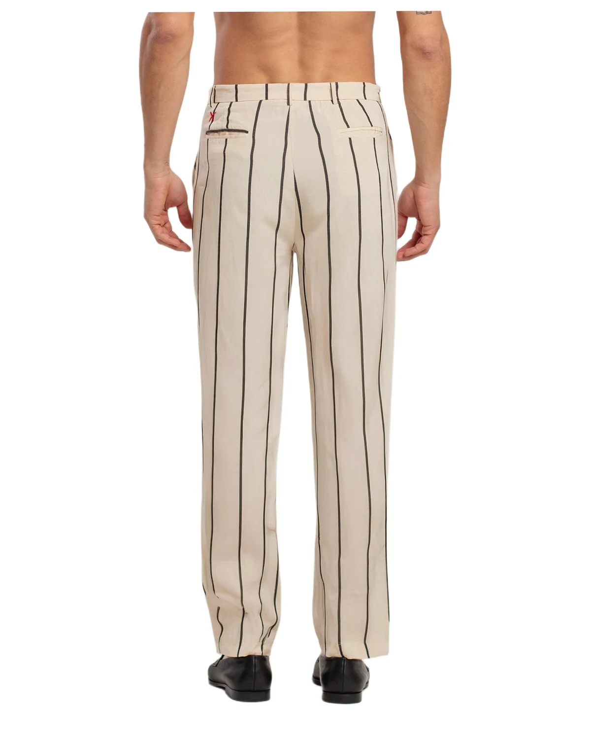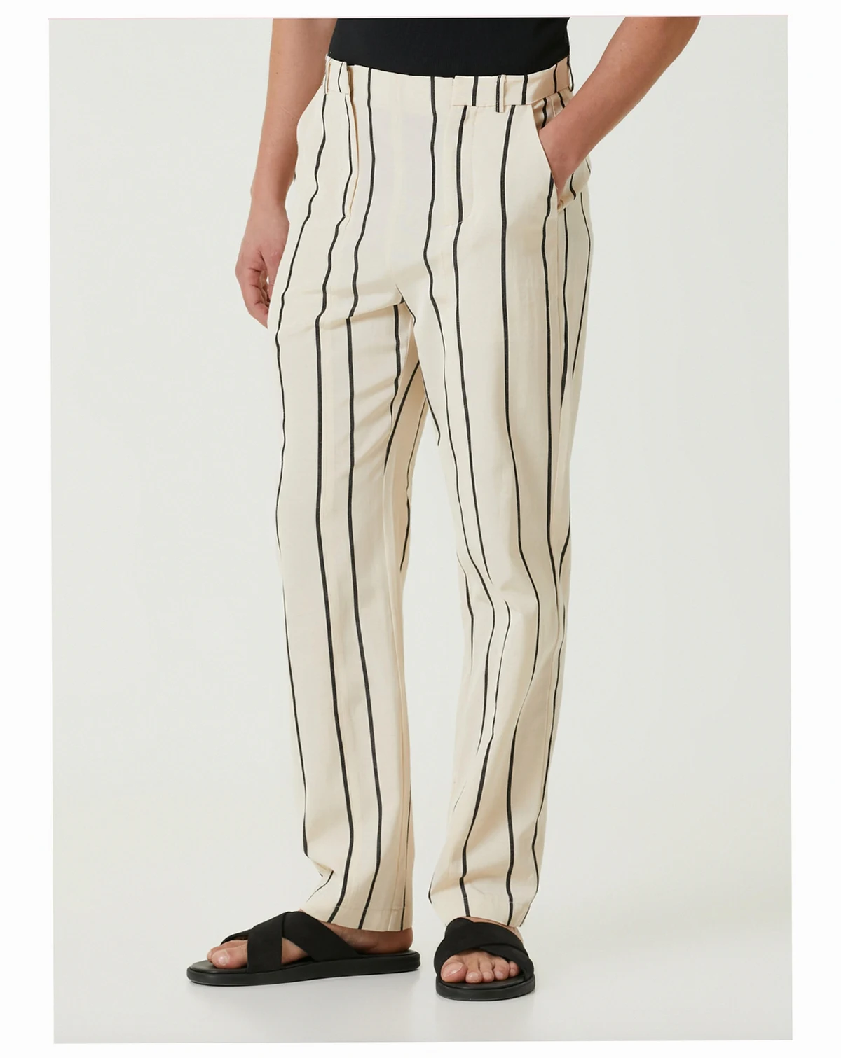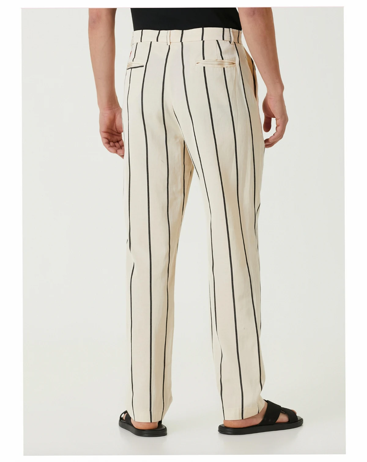 Women's Men's Striped Silk & Linen Blend Two-Zip Pants