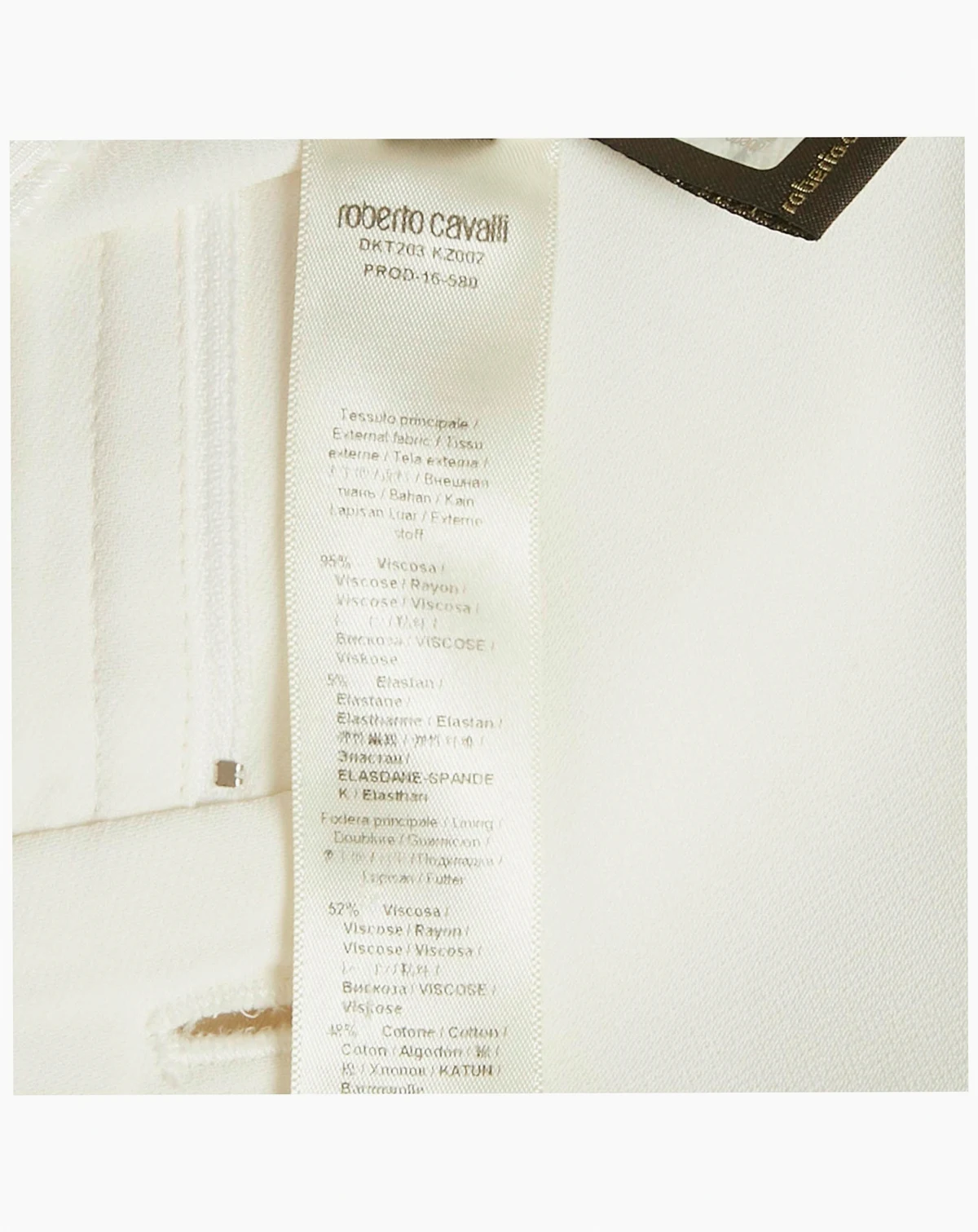 These Roberto Cavalli pants bring clean tailoring to the forefront with a crisp white crepe construction. The flared legs add movement and elongate the silhouette. Ideal for elevating daytime separates.