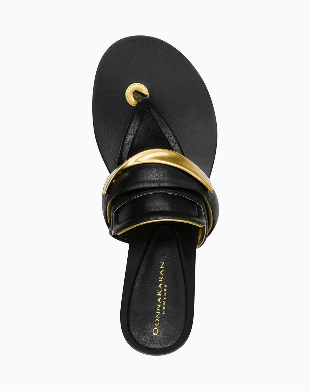 Step into luxe with the Donna Karan New York Velvet Flat Thong Sandal. Featuring a stacked heel, round toe and gold hardware, it combines style and comfort with a cushioned insole. Perfect for beach days, casual lunches, or evening strolls, imagine gliding through your day in effortless Donna Karan elegance.