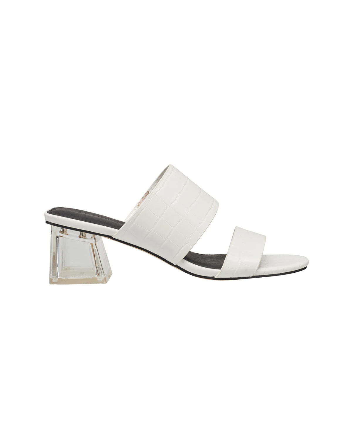 Great French Connection sandal that can be a staple in your footwear wardrobe. Very versatile to wear to work and out to dinner. This slip on dress sandal has a lucite block heel.