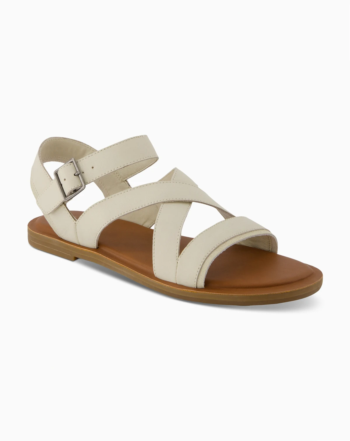 Flat down pat: the TOMS Sloane sandals pair strappy style with OrthoLite® insole comfort.
