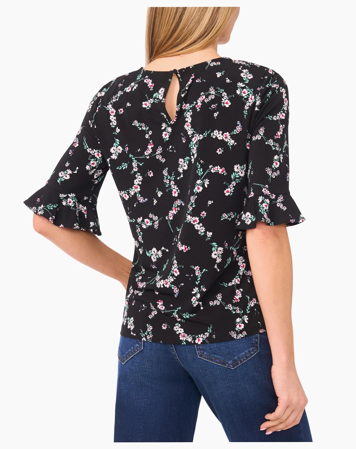 Add a touch of elegance to your wardrobe with this top from CeCe, featuring a crewneck and short ruffle sleeves for a relaxed fit. The knit construction offers easy wear while maintaining a polished look. ABOUT THE BRAND: CeCe is a contemporary lifestyle brand inspired by a romantic take on the everyday, punctuated by taste, wit, and on-the-go flair.
