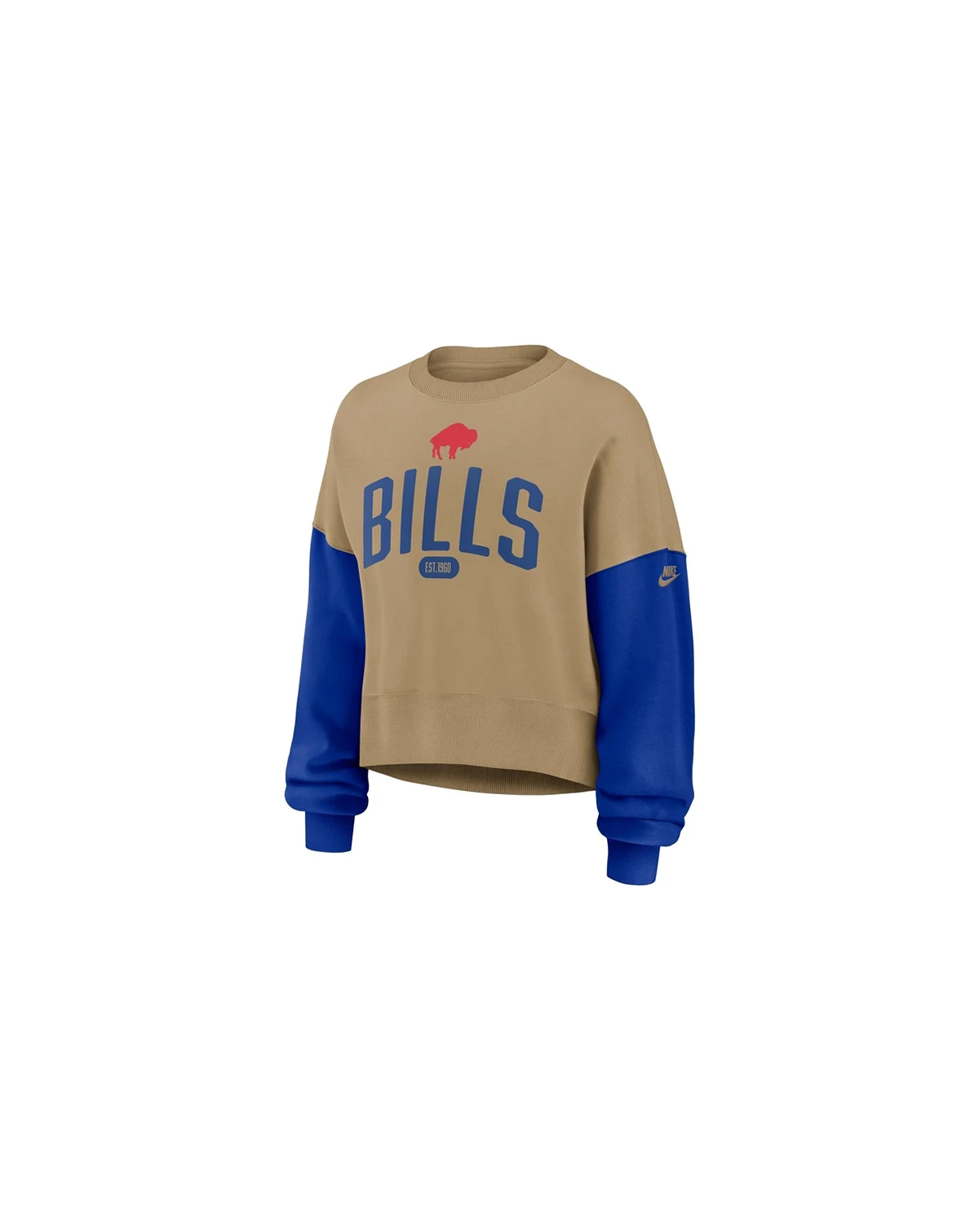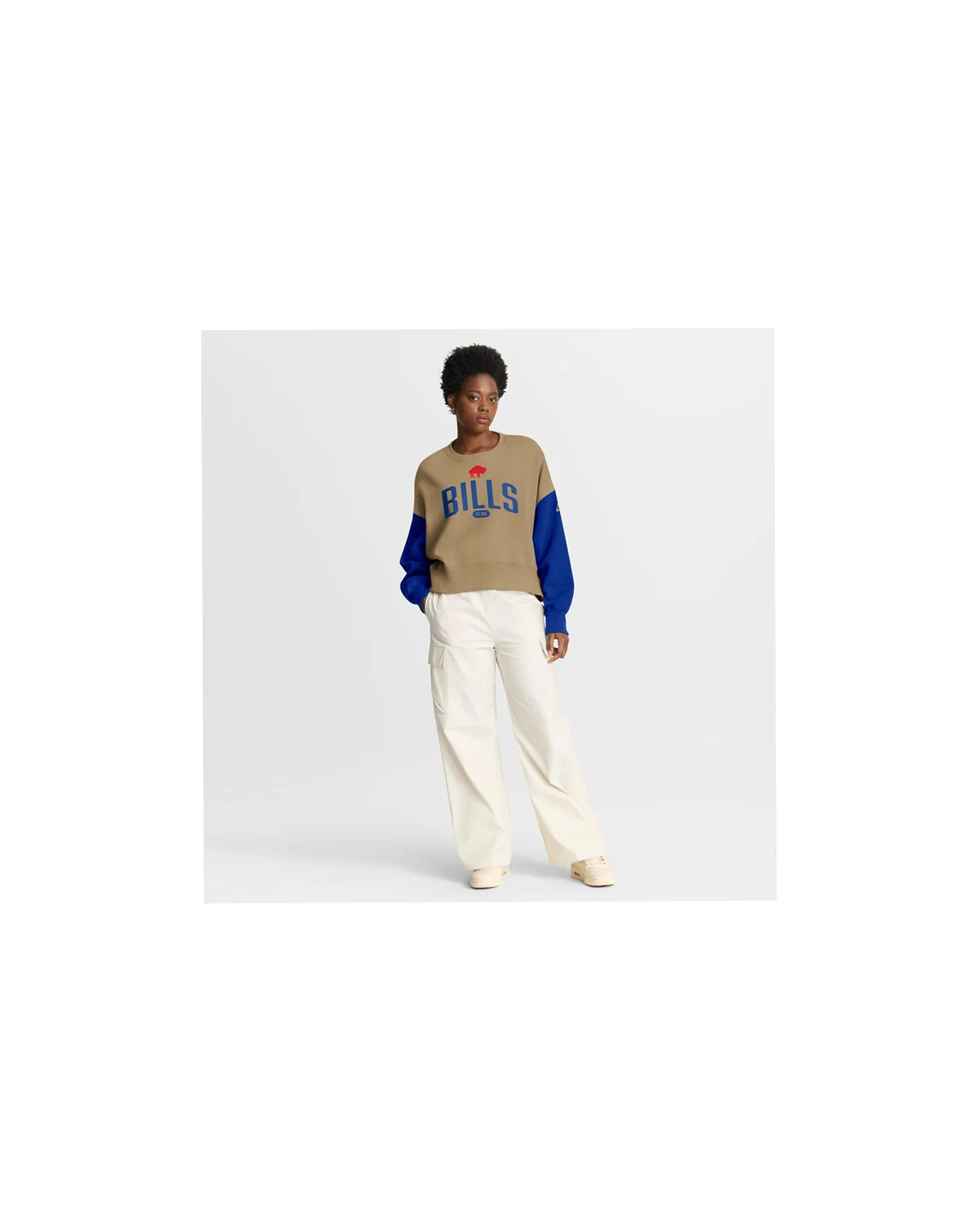 Stay comfy in fashionable Buffalo Bills apparel with this Oversized Rewind Pullover Sweatshirt by Nike. It features dropped shoulders and scrunched sleeves for a trendy look and relaxed fit. Fleece fabric and brushed French terry lining provide exceptional warmth and a luxuriously soft feel, making this Buffalo Bills sweatshirt perfect for cooler game days or casual outings.
