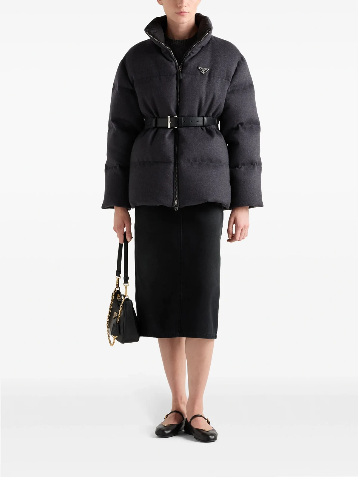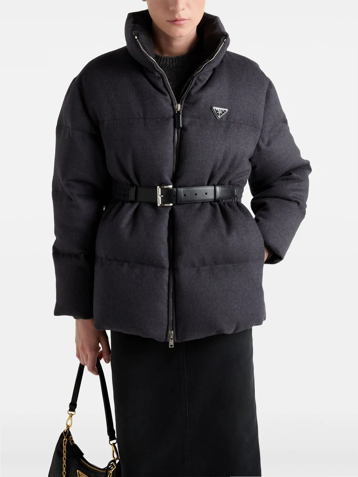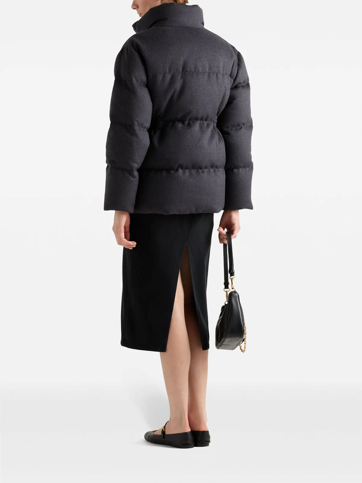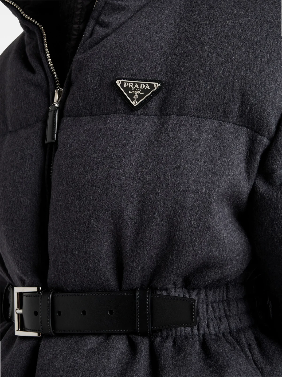 Outer: Virgin Wool 100%, Calf Leather 100% Lining: Recycled Polyamide 100%, Recycled Polyester 100%, Goose Down 90%, Goose Feather 10%