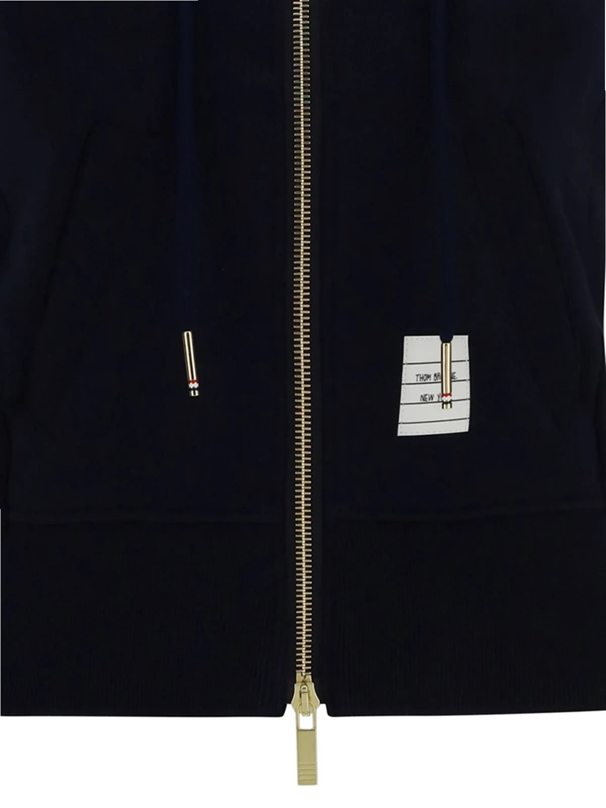 Embrace a sporty aesthetic in the sleekest way possible. This navy blue cotton 4-Bar stripe hoodie from Thom Browne is your answer to laid-back Sundays. Comfort never looked so good. Featuring a drawstring hood, a front zip fastening, long sleeves, two front pockets, a front logo patch, a ribbed hem and cuffs and 4-Bar stripes to the sleeve.