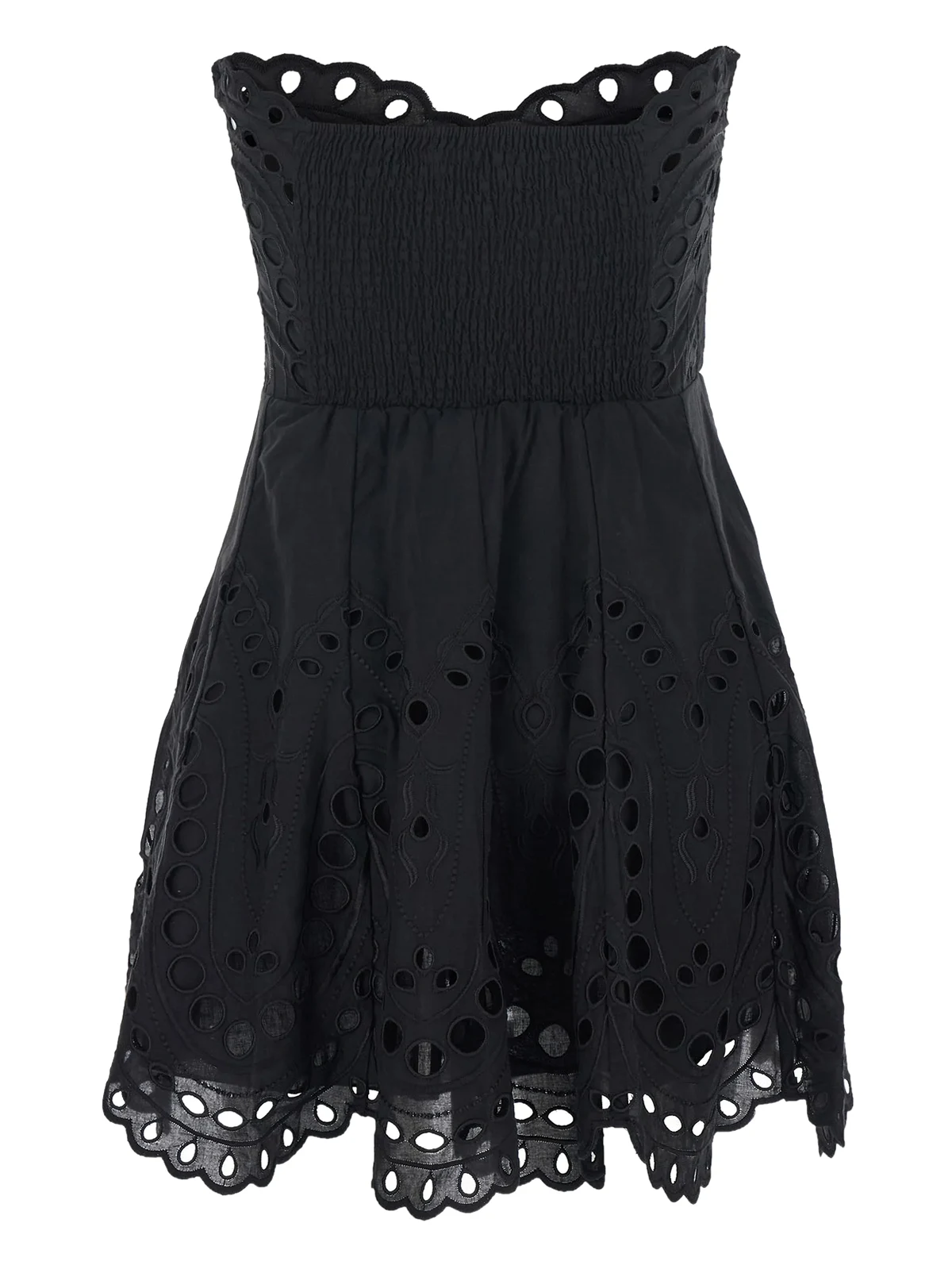 embroidered shirred mini dress