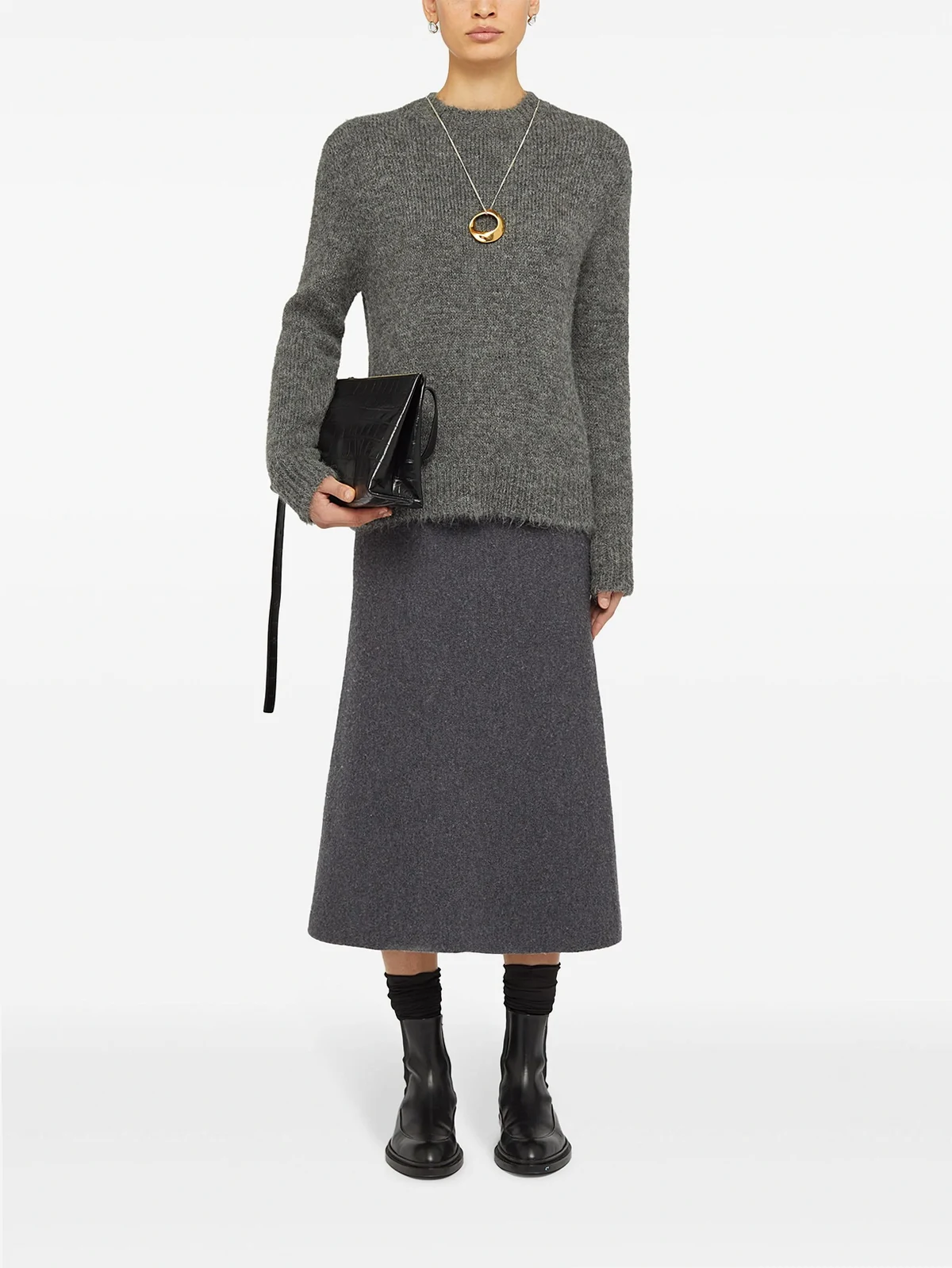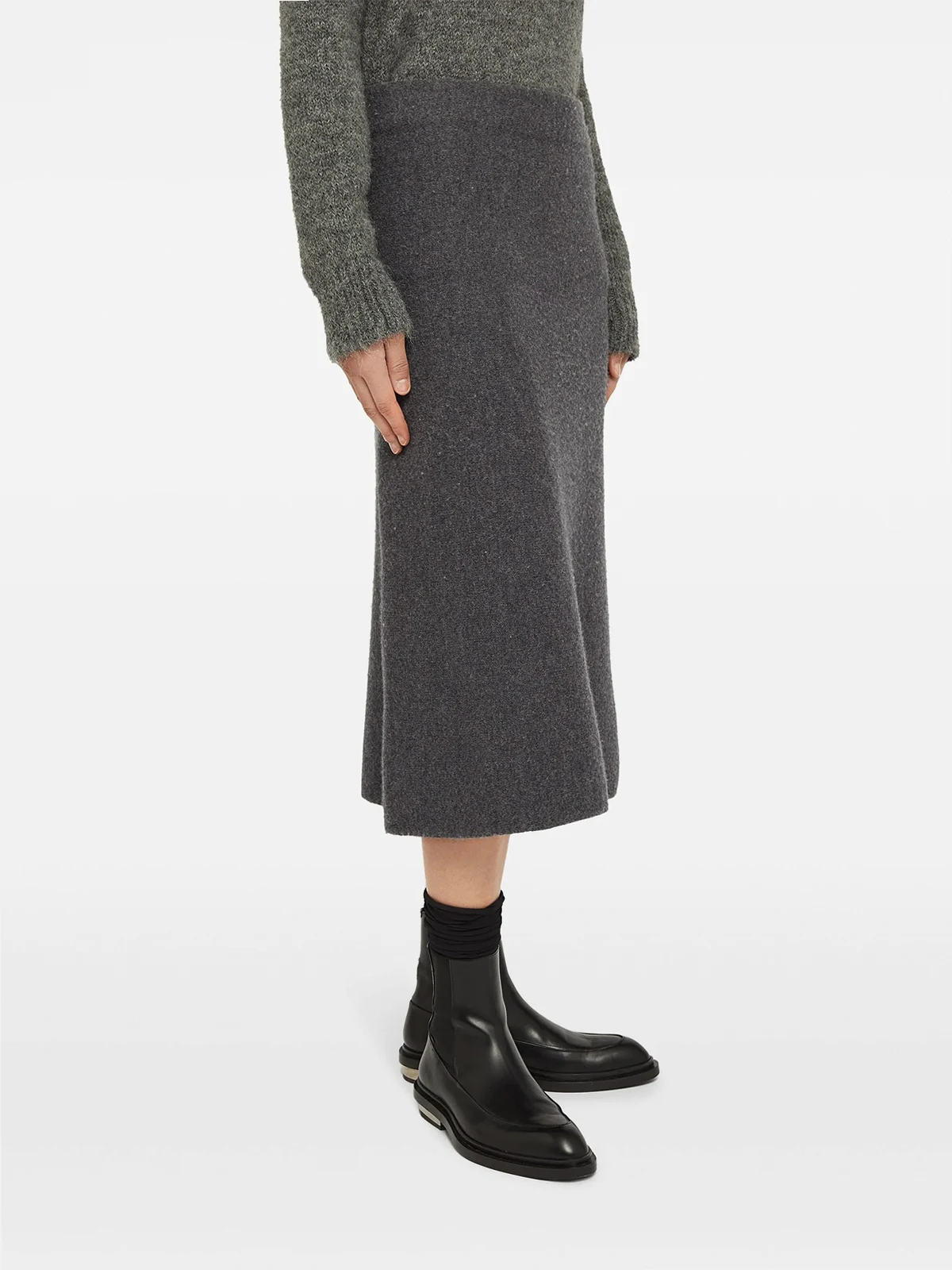 wool A-line midi skirt
