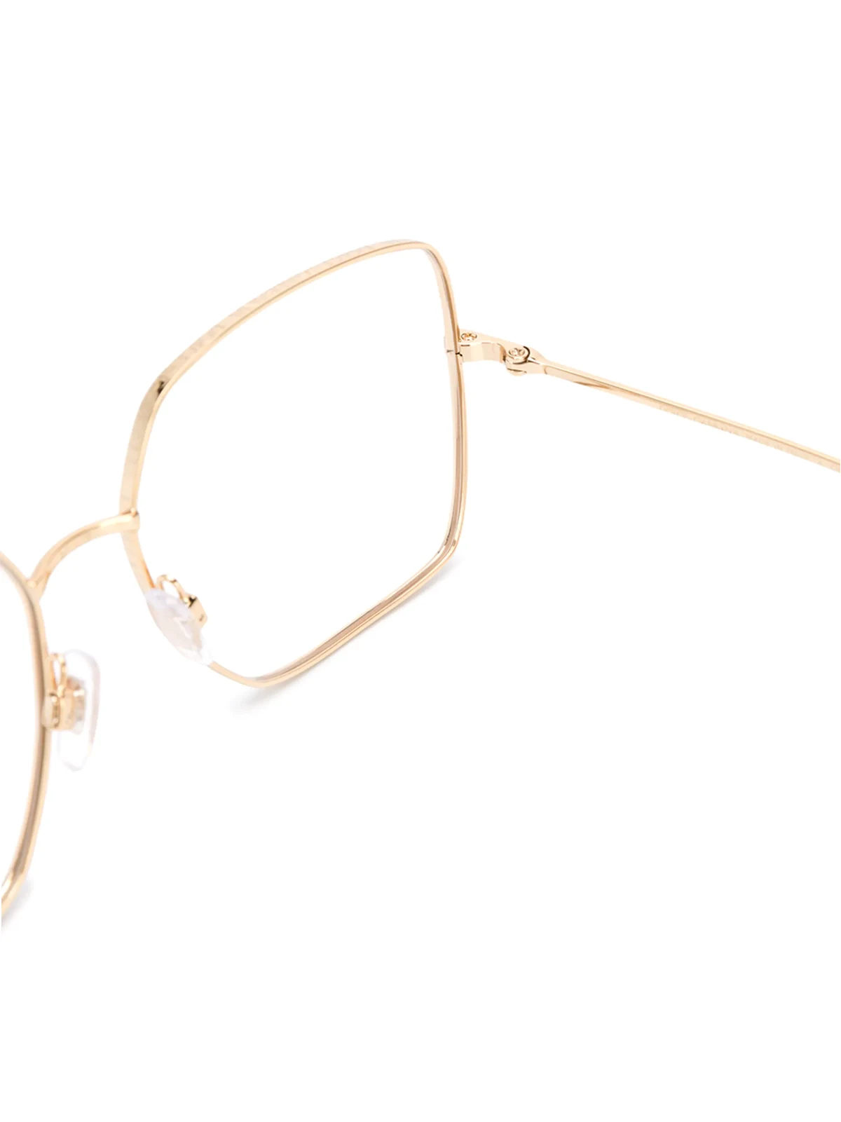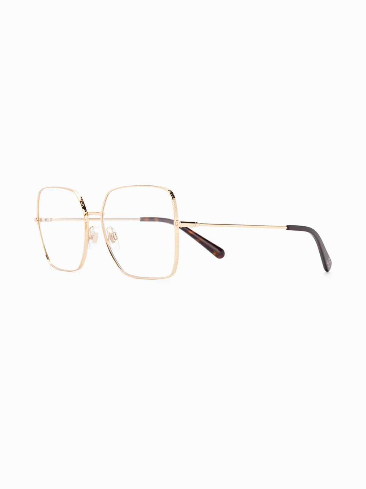 Modify the optics on retro 70s style with these gold-tone DG1323 oversized glasses from Dolce & Gabbana Eyewear. Worn with confidence, these accentuated frames embrace the wide-eyed runway movement - all the better to see you with, my dear. Featuring square frames, a logo decal on the lens, a straight bridge and straight arms with angled tips. These glasses can be adapted to fit all types of prescription lenses.