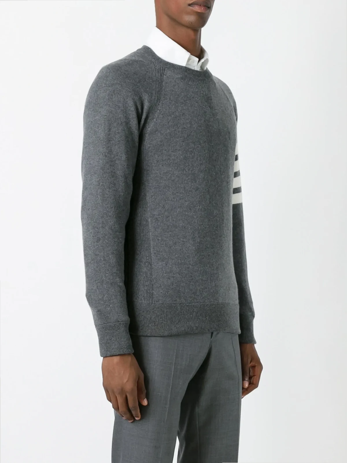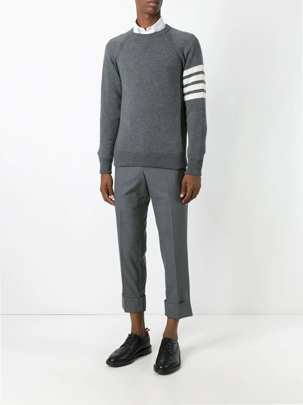 Keep cosy in comfort. You're covered, with Thom Browne's 4-Bar detail, long sleeve jumper. You've earnt your style stripes with this design.
