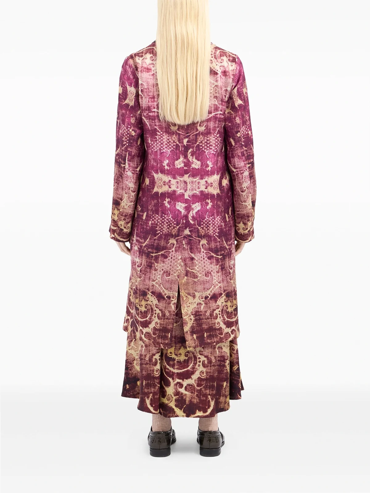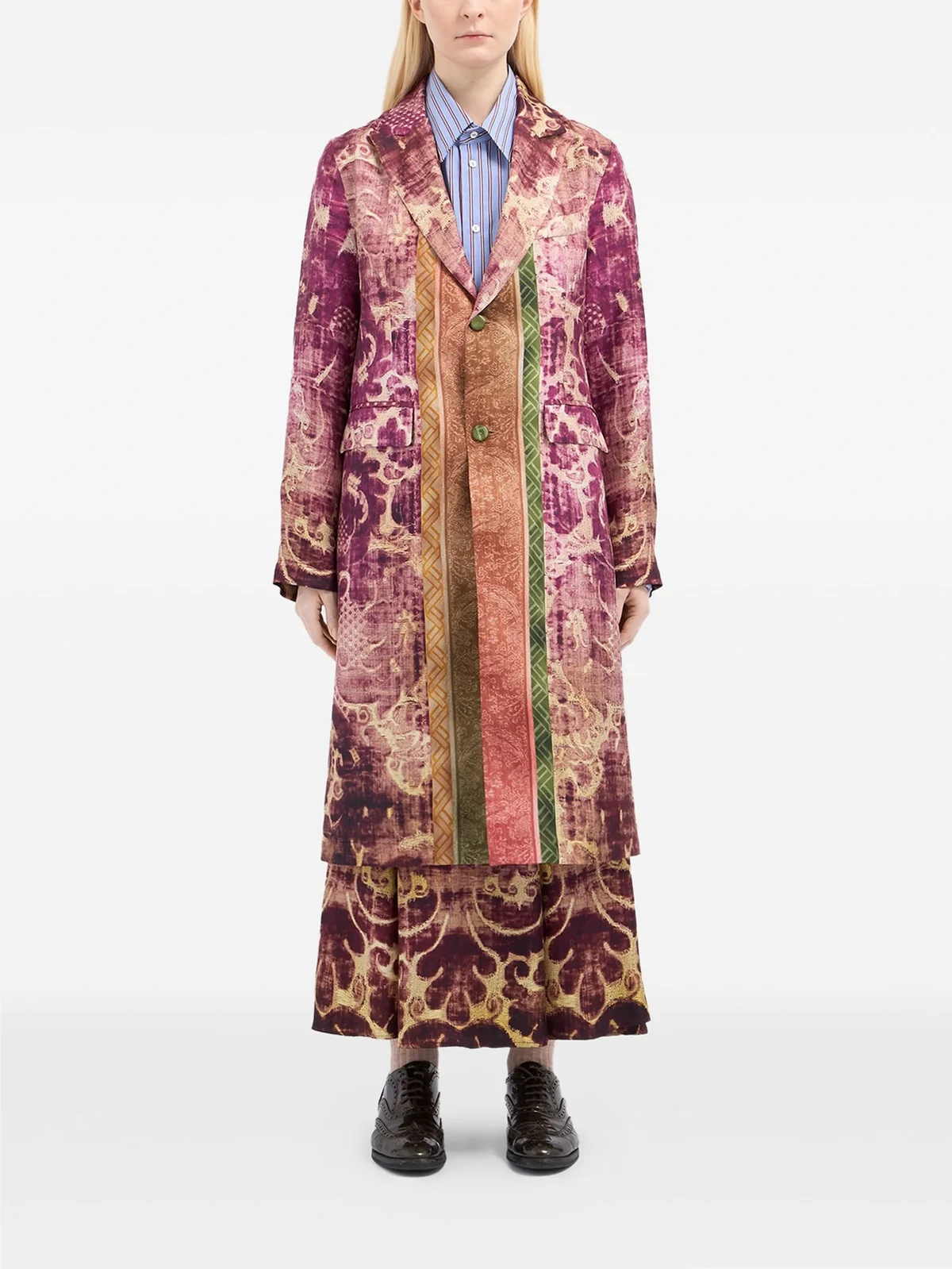 damask-print panelled coat