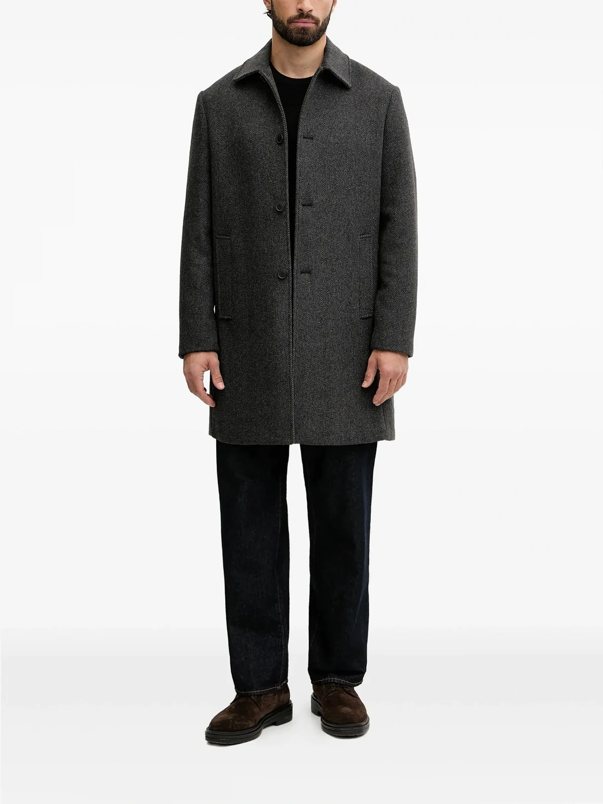 button herringbone coat