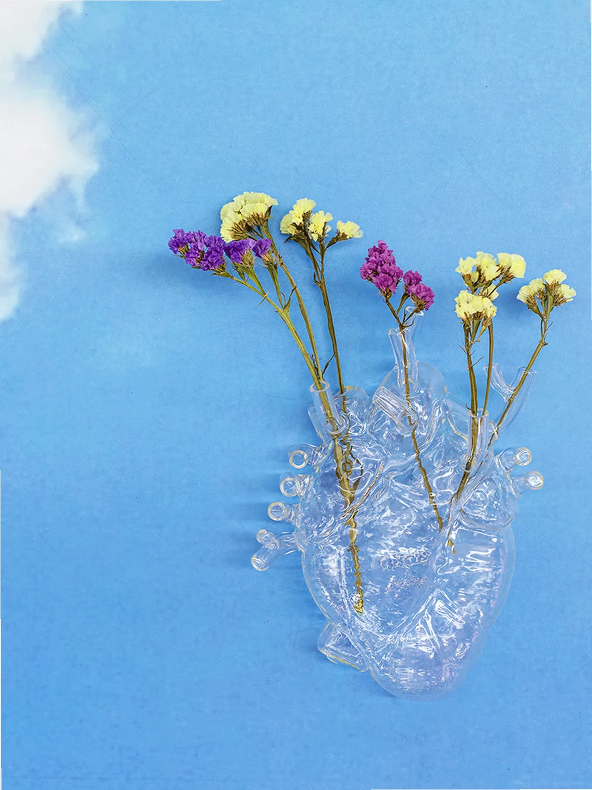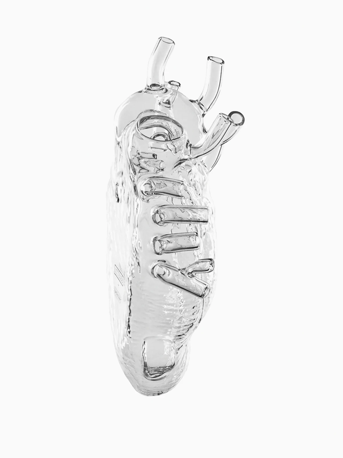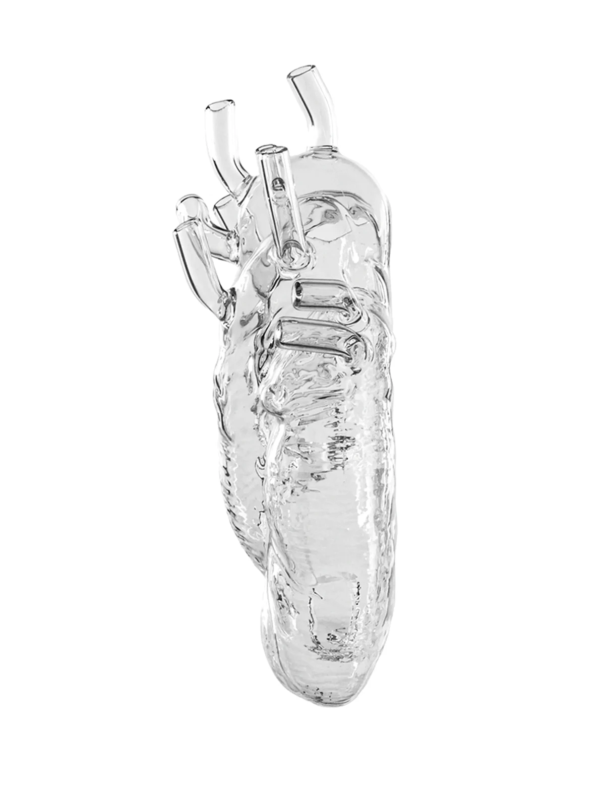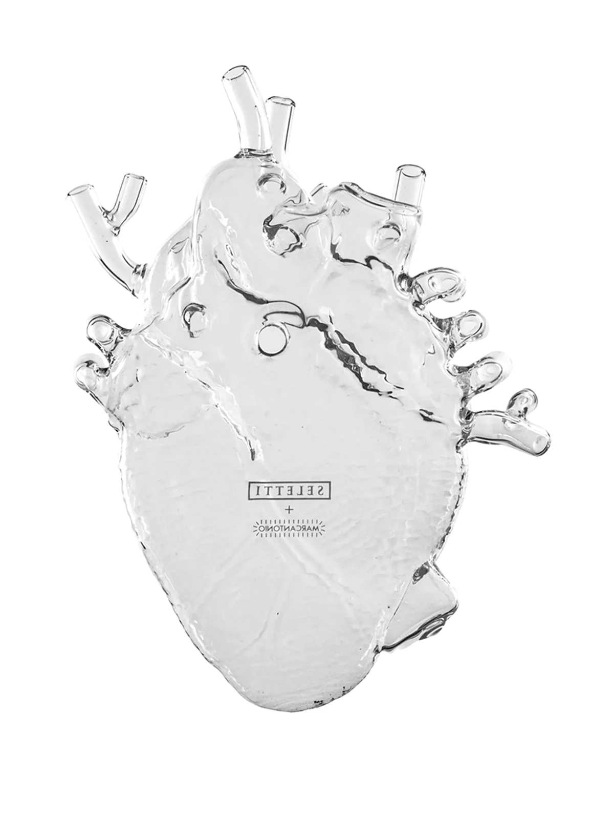 white glass transparent design heart shape open top 16,7 x 7 cm