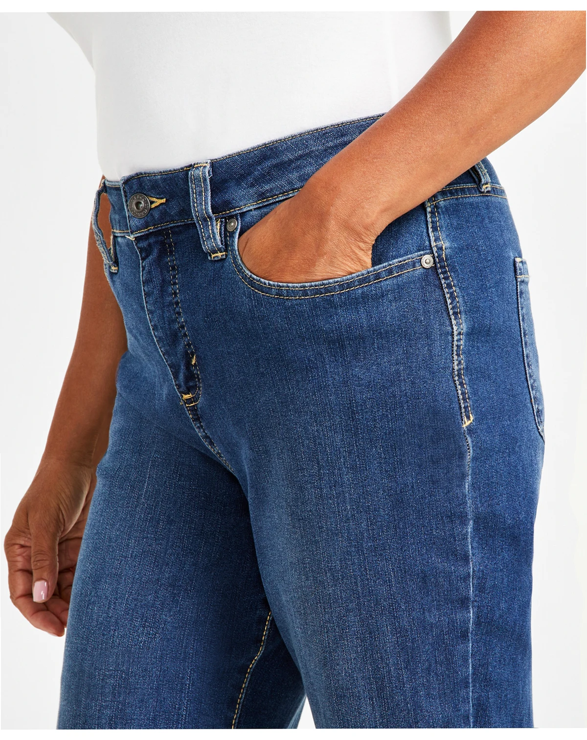 Approx. model height is 5'10" and she is wearing size 6; Approx. inseam: 31" (regular); 33" (long); 29" (short); straight leg silhouette; curvy fit; Approx. front rise: 11-1/4"; high rise;
