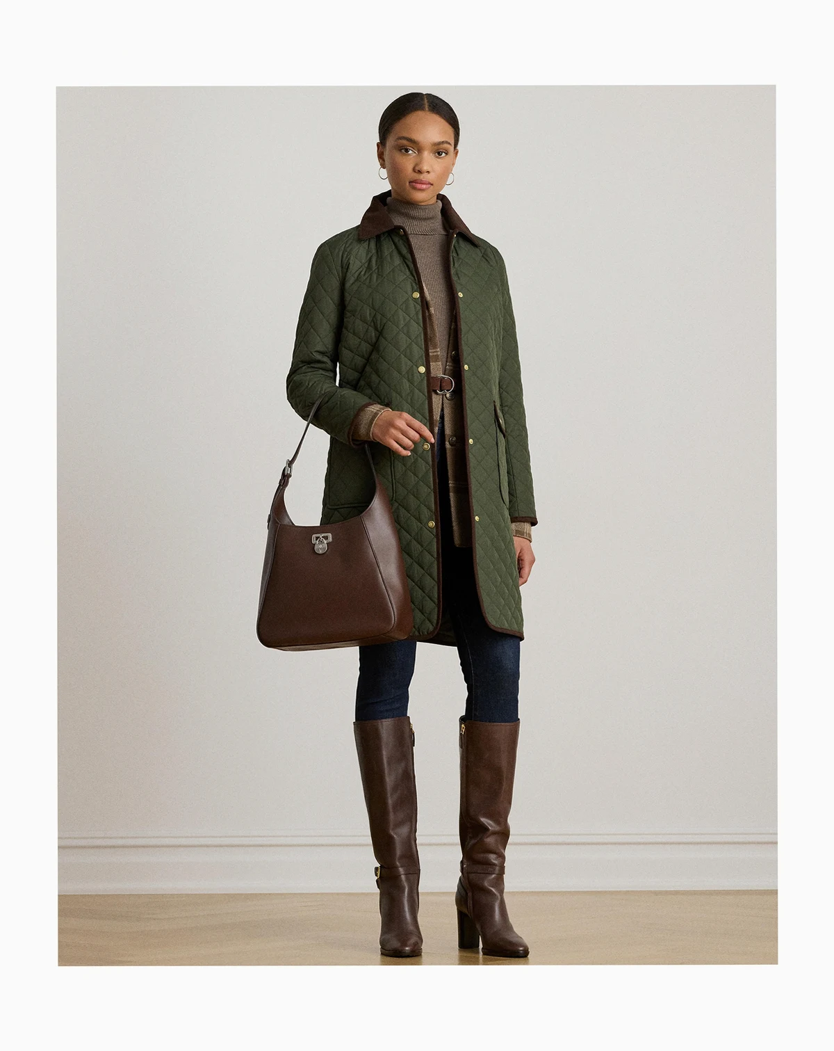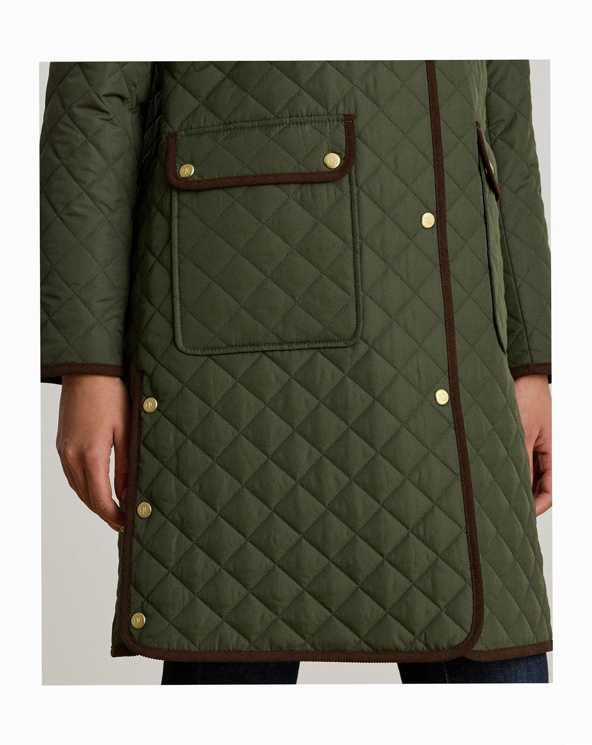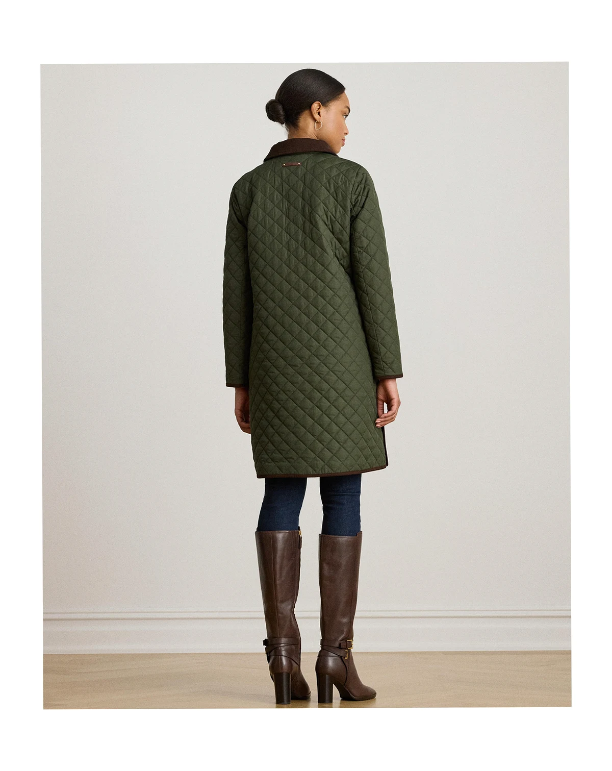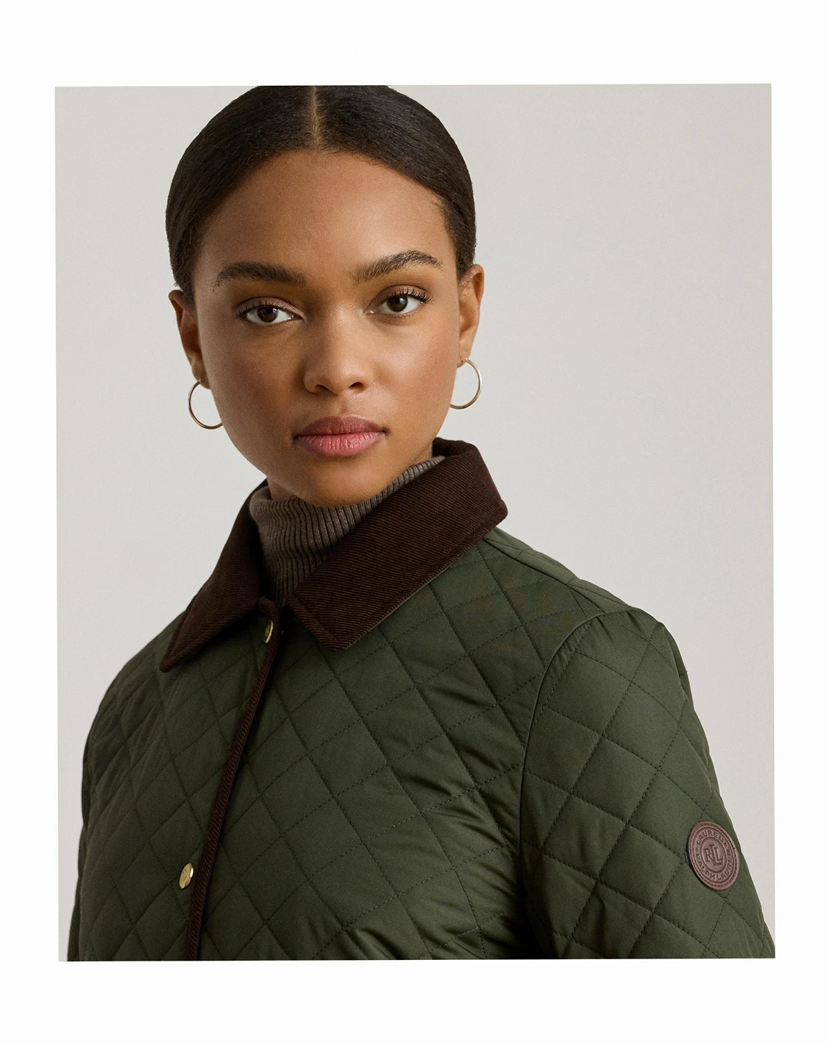 A diamond-quilted construction and velvety corduroy trim define the sophisticated character of this Lauren Ralph Lauren jacket, which features a water-resistant insulated shell to keep you warm. A faux-leather logo patch at the sleeve completes the look.