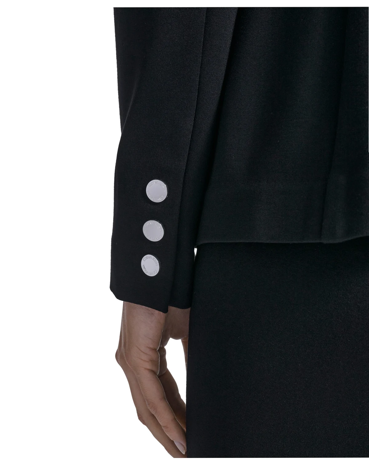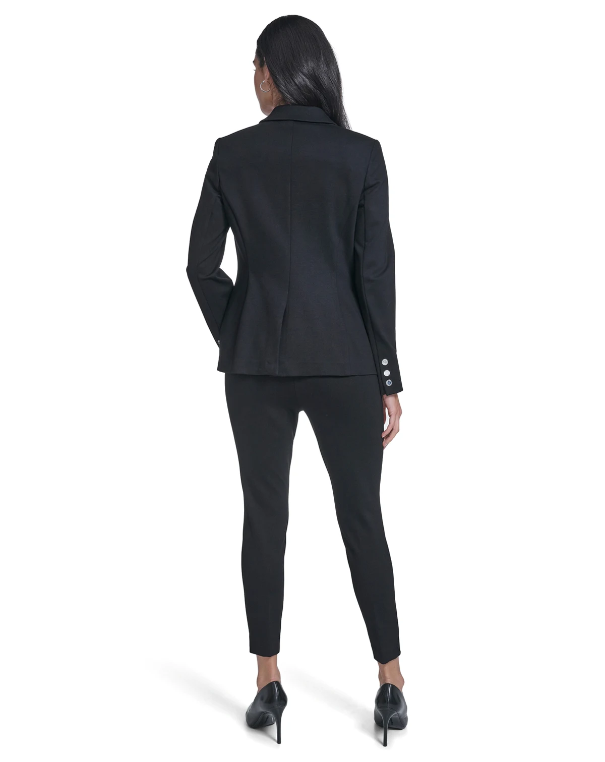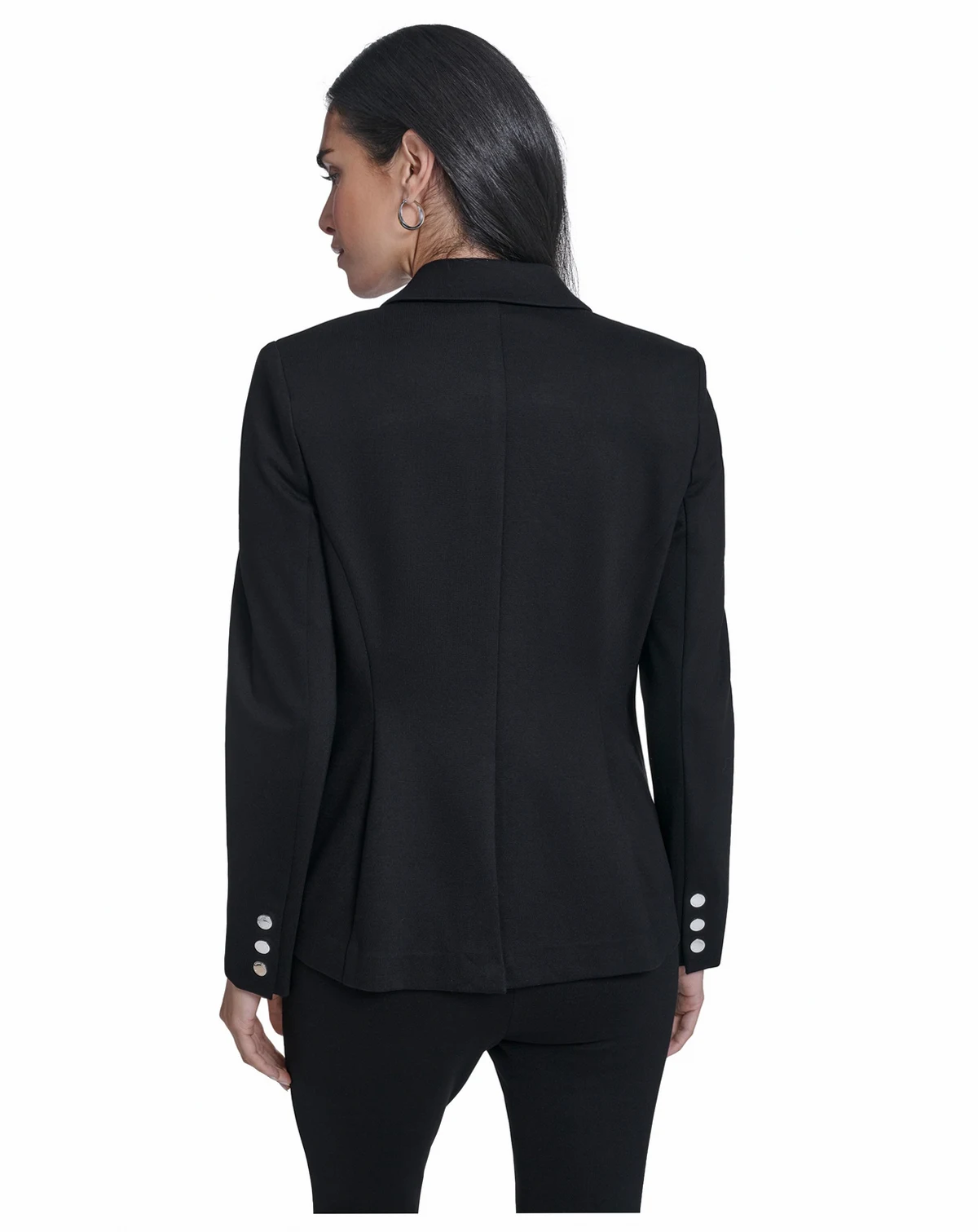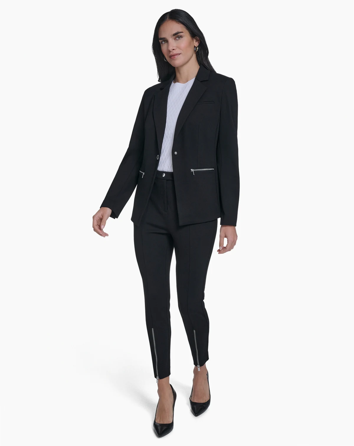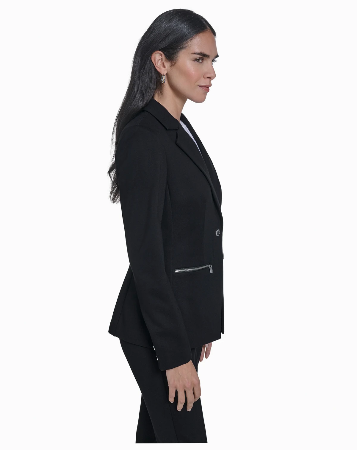 Cut from a ponte fabric, this one-button jacket from Calvin Klein features a notch collar and long sleeves for a structured look. Two front pockets add a practical element to the refined design.