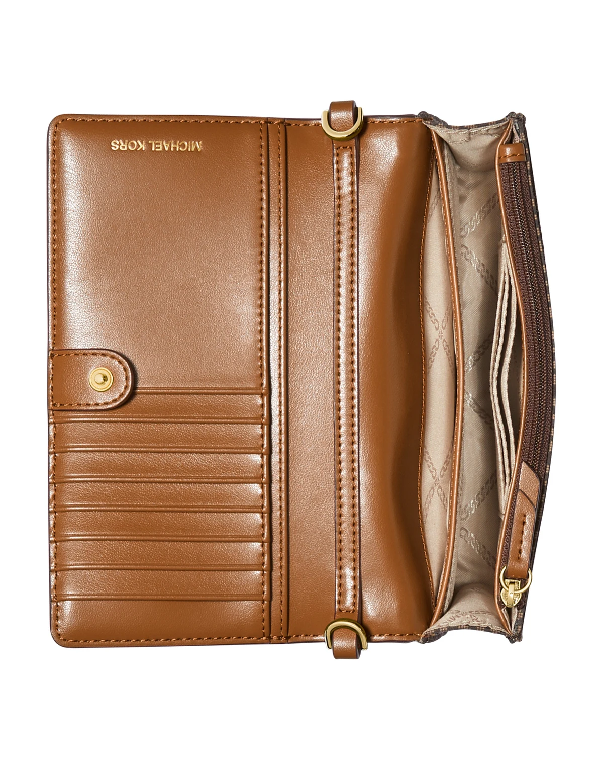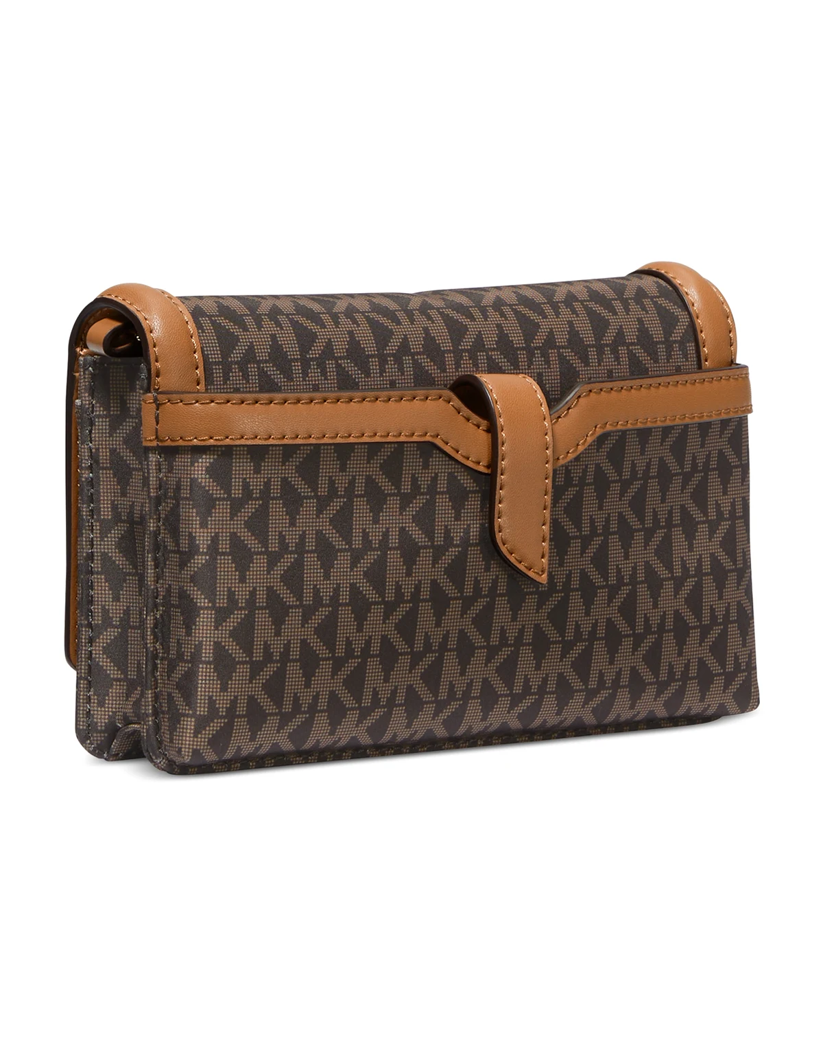 The Jet Set phone crossbody bag by MICHAEL Michael Kors is constructed from a soft, perforated fabric that's printed with a repeat logo pattern for laid-back polish.