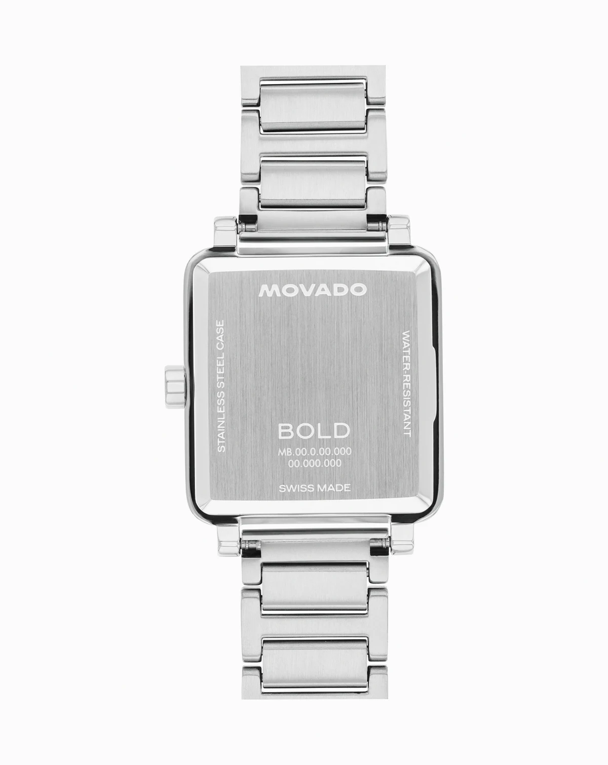 The BOLD Evolution 2.0 is defined by an elevated, bold case and a dimensional micro-textured dial. This 26mm square watch features a light blue lacquer dial, slim steel hands, and our signature dot at 12 o'clock.