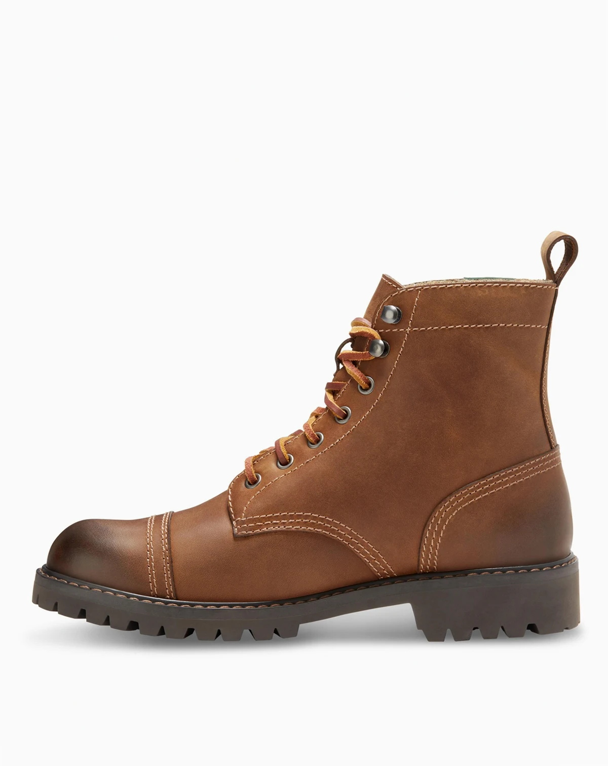 Our rugged and bold Ethan 1955 cap toe boots are finished with a durable lug sole.