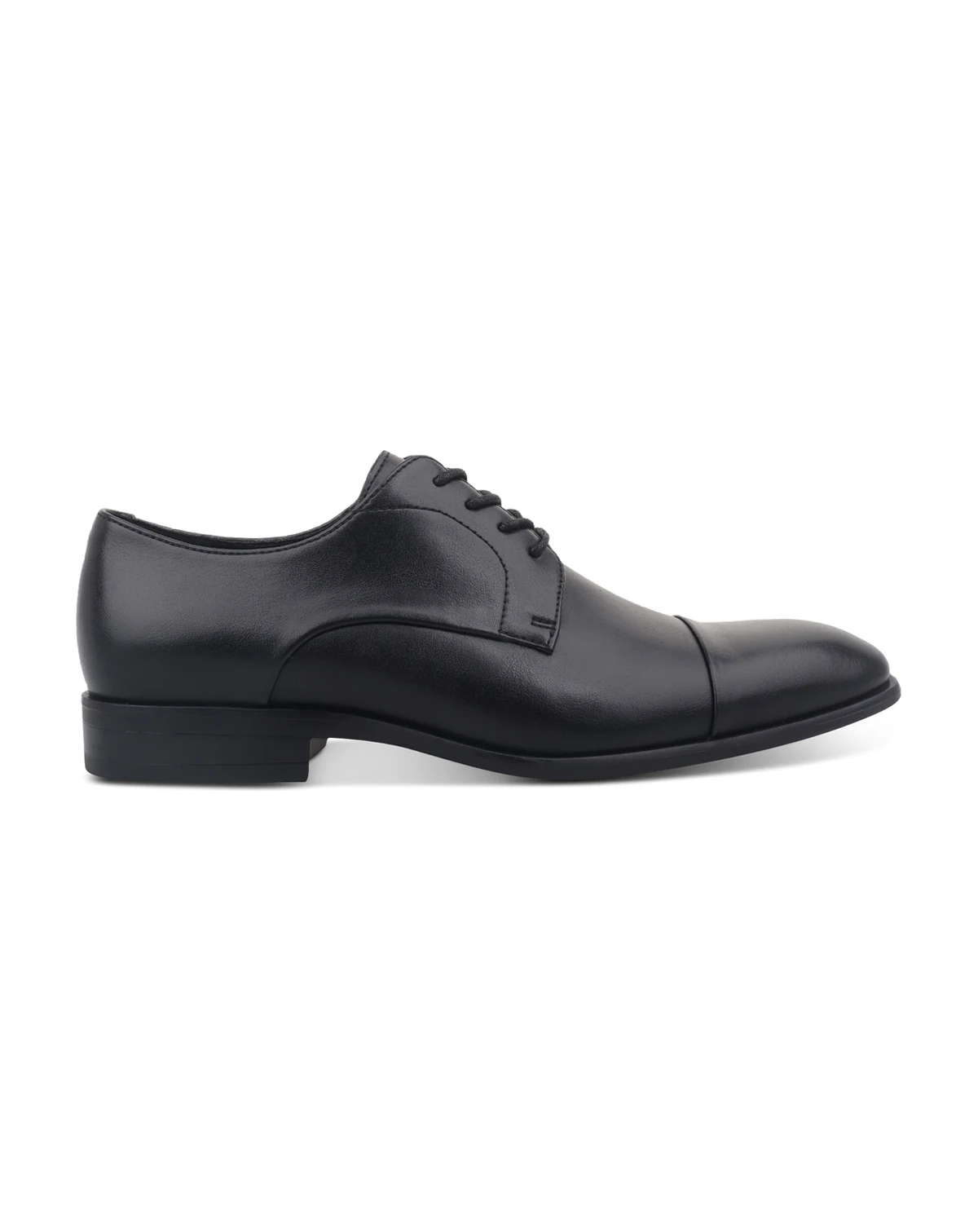 A sleek cap toe adds a touch of modern fashion to these dress-ready faux leather Oxford dress shoes from Alfani.