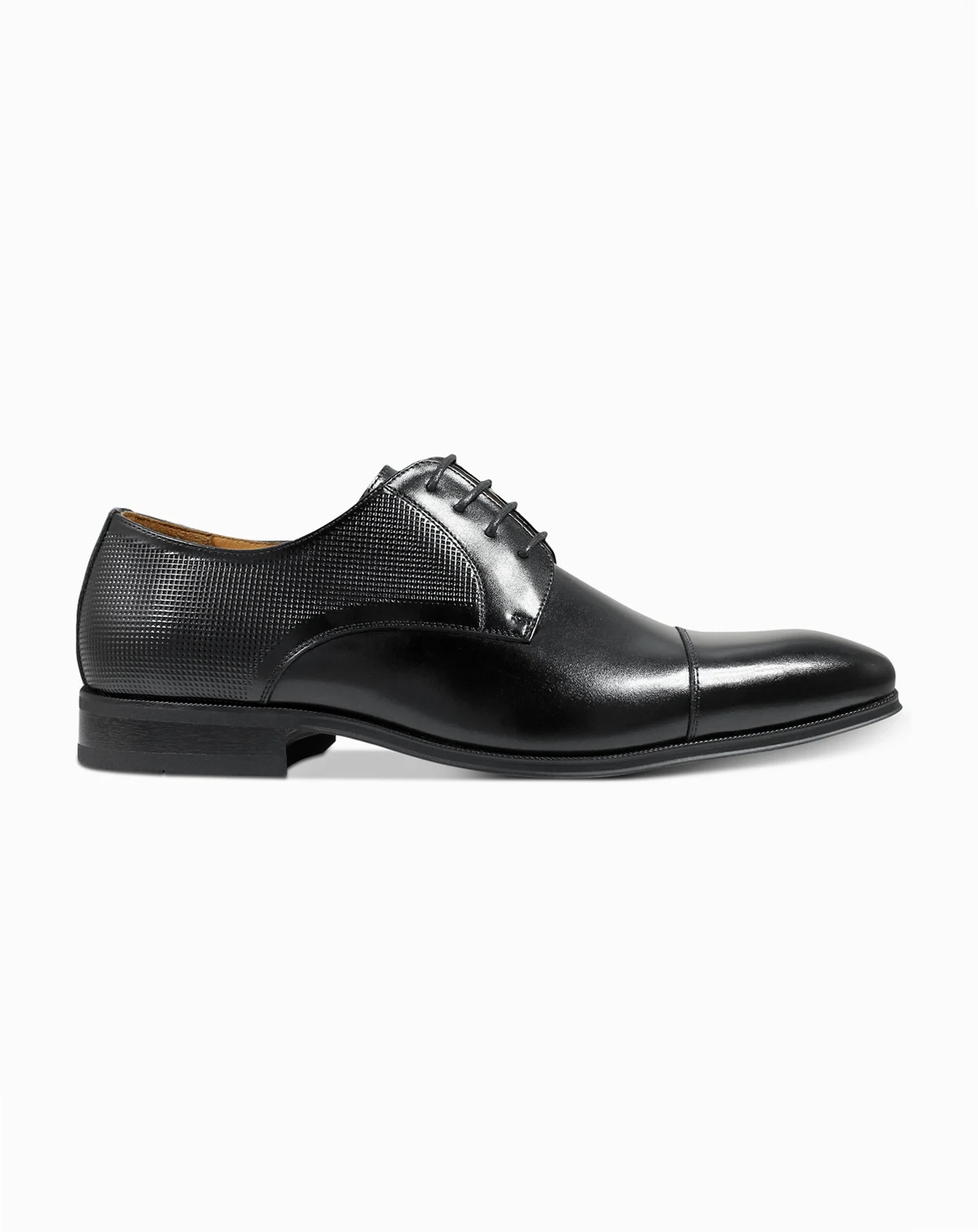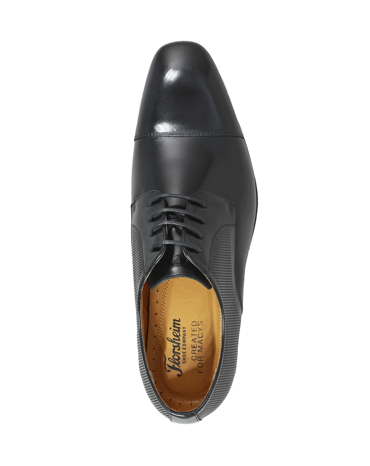 Florsheim uses an embossed cap toe at the leather upper to create the sophisticated look of these lace-up dress shoes.