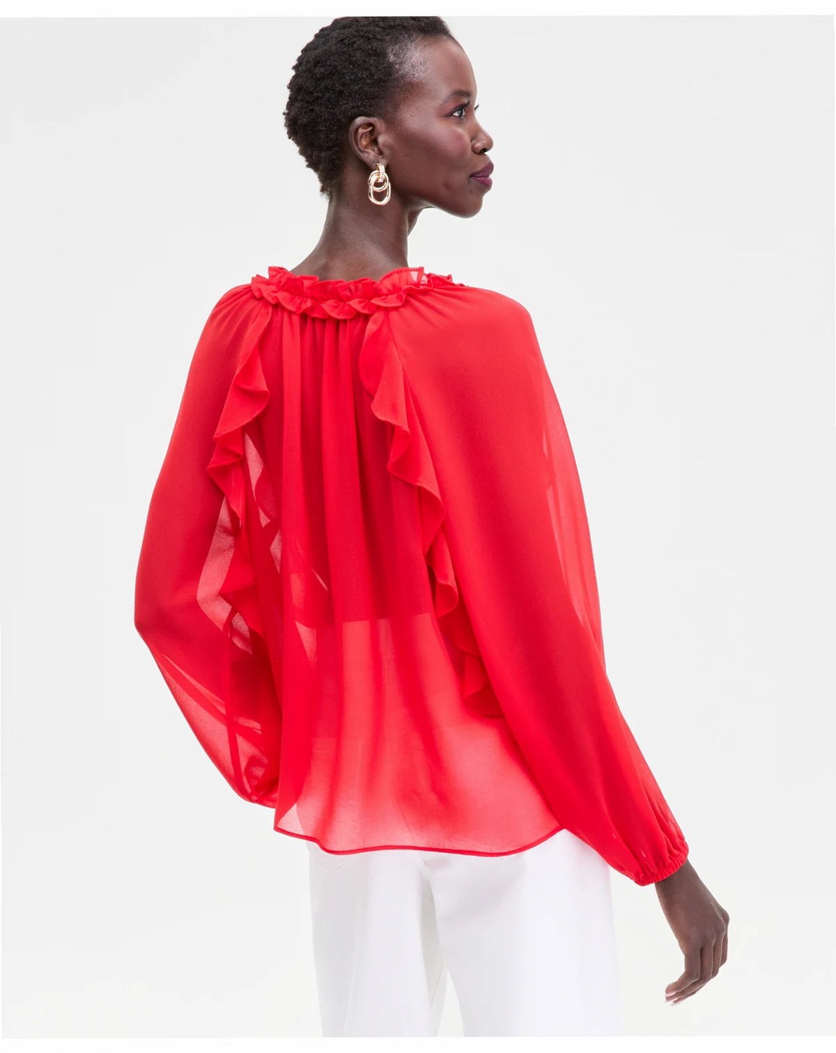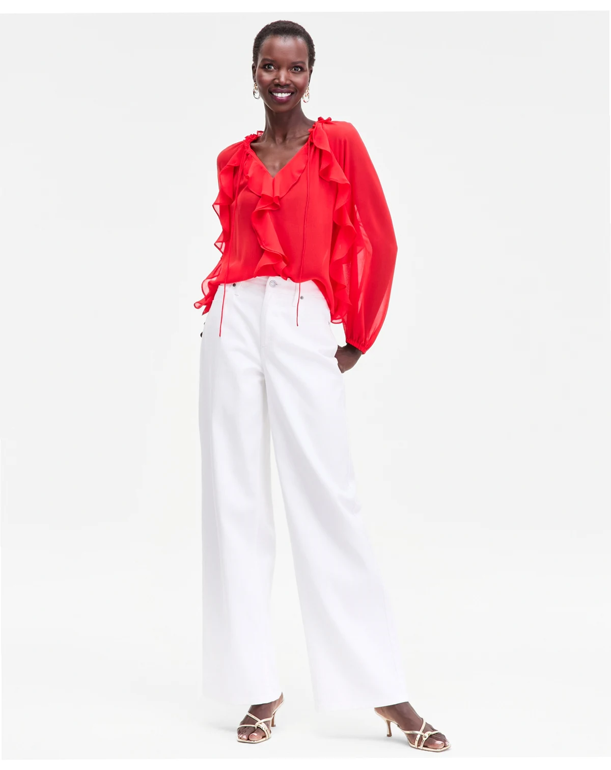 Women's Ruffle-Trim V-Neck Blouse, Macy's Exclusive