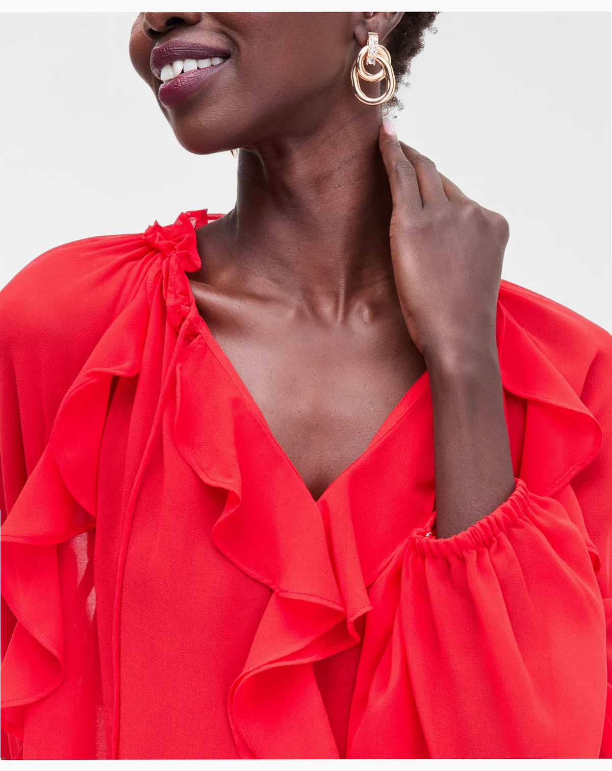 I.N.C. International Concepts updates a V-neck georgette blouse with cascading ruffles that lend a touch of romance. ABOUT THE BRAND: I.N.C. is inspired by fabulous women—always bold, confident, and stylish.