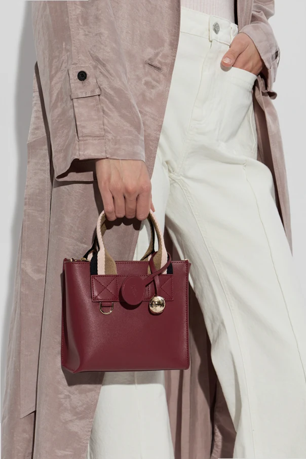 The Divide Mini by Furla exudes understated sophistication with its petite, rectangular silhouette and subtly reinforced structure. Crafted from premium, smooth, rigid leather with a delicate sheen, its minimalist design is beautifully complemented by wide handles in contrasting beige and black textiles, providing both comfort and visual intrigue.