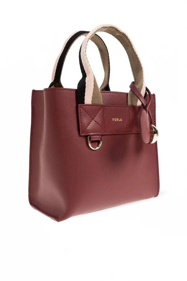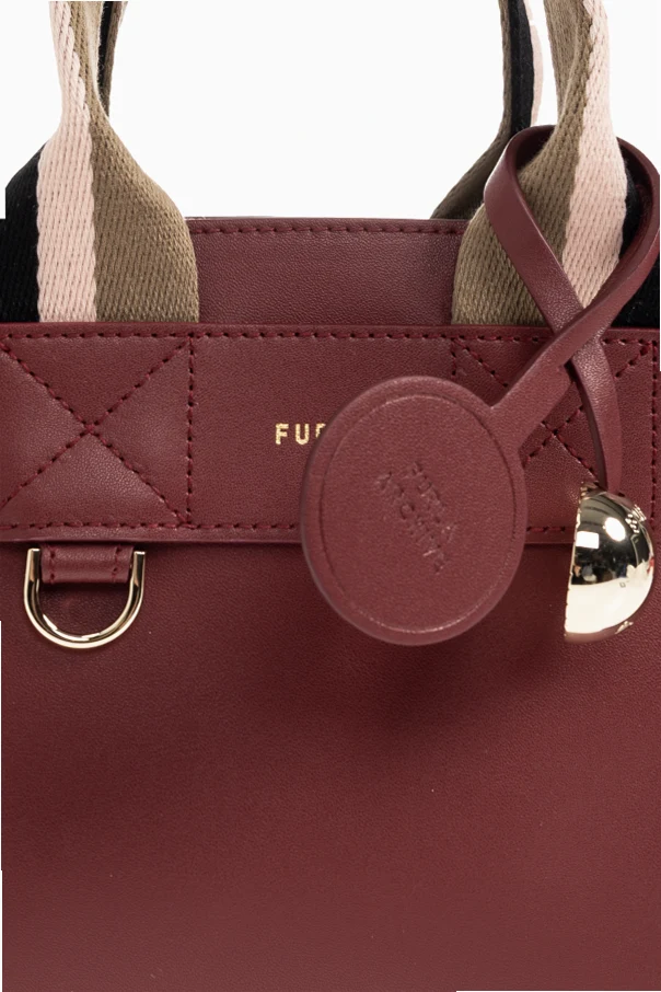 Thoughtful details define its unique allure—the front is adorned with a stitched leather strap featuring an elegant X accent, while a golden D-ring beneath the handle invites personalized accessorizing. A circular leather charm and refined gold embellishment highlight the bag’s artisanal pedigree, alongside a discreet gold “FURLA” logo. This exquisite handbag radiates timeless elegance, perfect for discerning women who appreciate exceptional materials and meticulous craftsmanship.