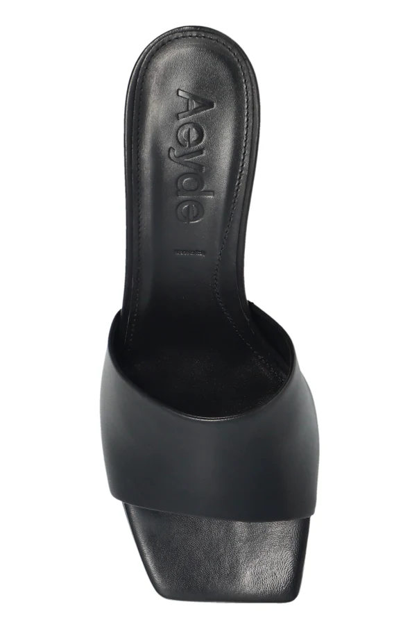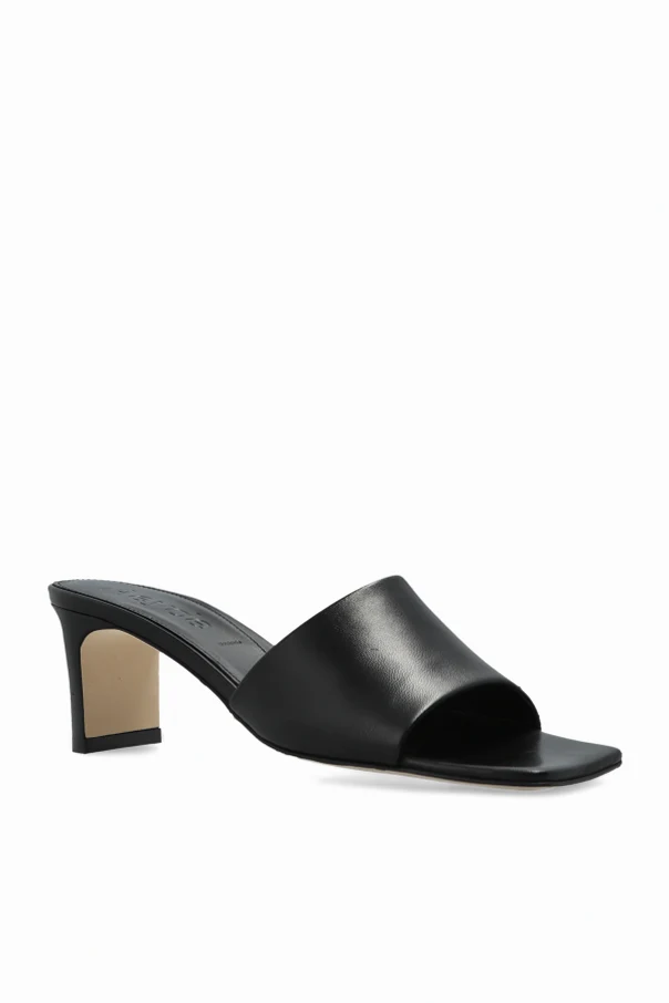 Introducing the Jessie heeled mules by Aeyde —a masterful blend of contemporary minimalism and understated sophistication. Crafted from premium, smooth leather in timeless black , these open-toe mules feature a slightly squared toe that lends a modern dimension to the silhouette. The stable block heel, of moderate height, effortlessly elongates the leg while ensuring enduring comfort.