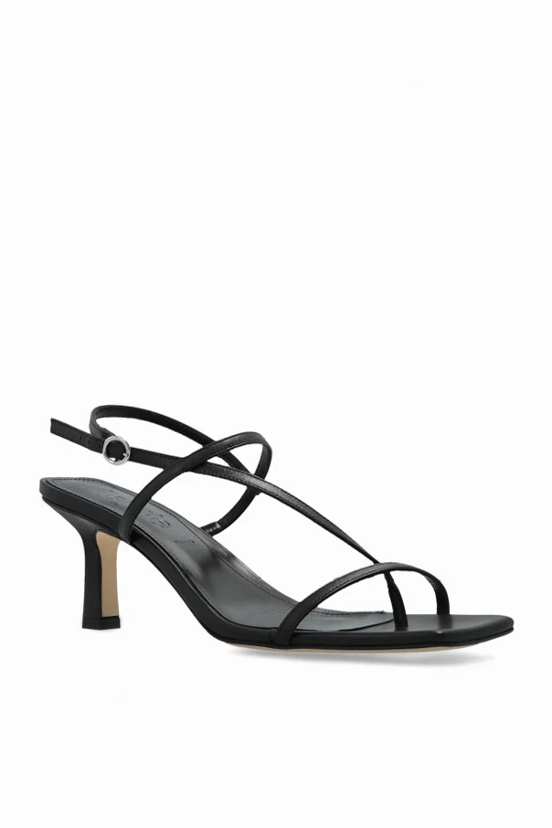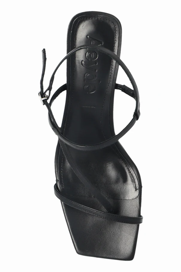 Epitomizing refined sophistication, the Elise Heeled Sandals by Aeyde in black captivate with their modern, minimalist silhouette. The elongated, square toe and gracefully shaped, mid-height straight heel merge contemporary elegance with timeless allure.