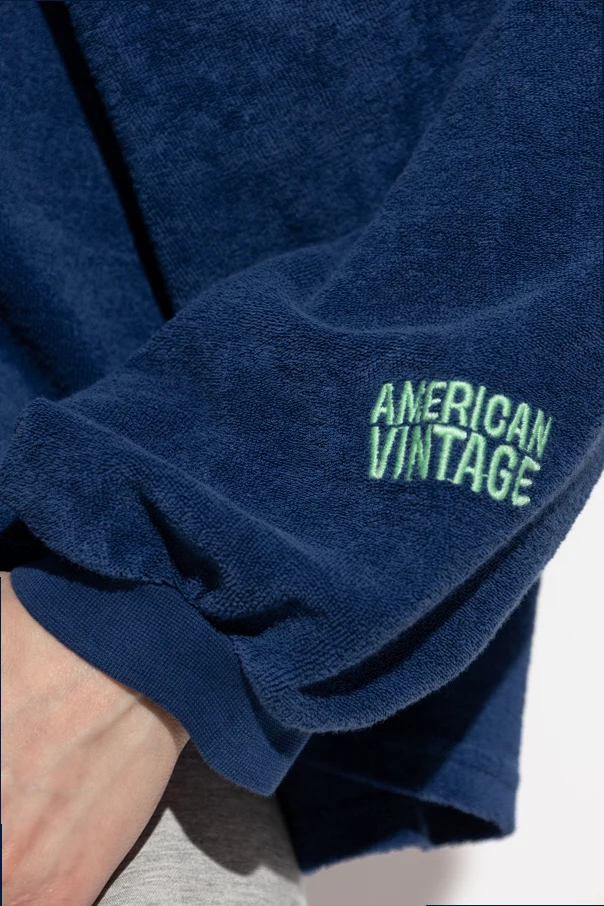 Unadorned yet striking, the deep navy hue provides a timeless canvas, elegantly offset by a discreet green embroidered “AMERICAN VINTAGE” moniker on the left sleeve—an understated signature detail. Designed without a hood or zipper and finished with a classic crewneck, this sweatshirt epitomizes refined minimalism with an inherently luxurious touch.