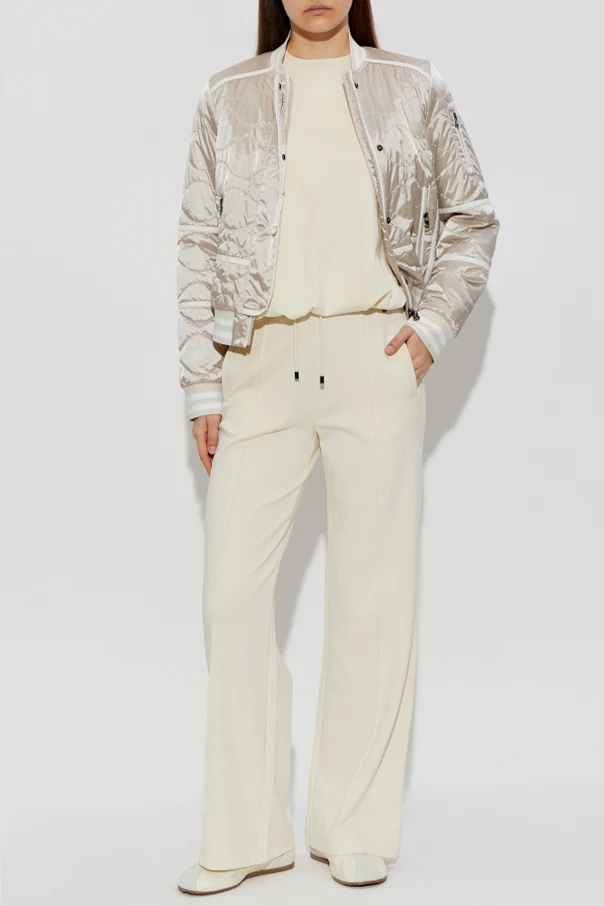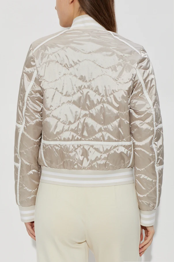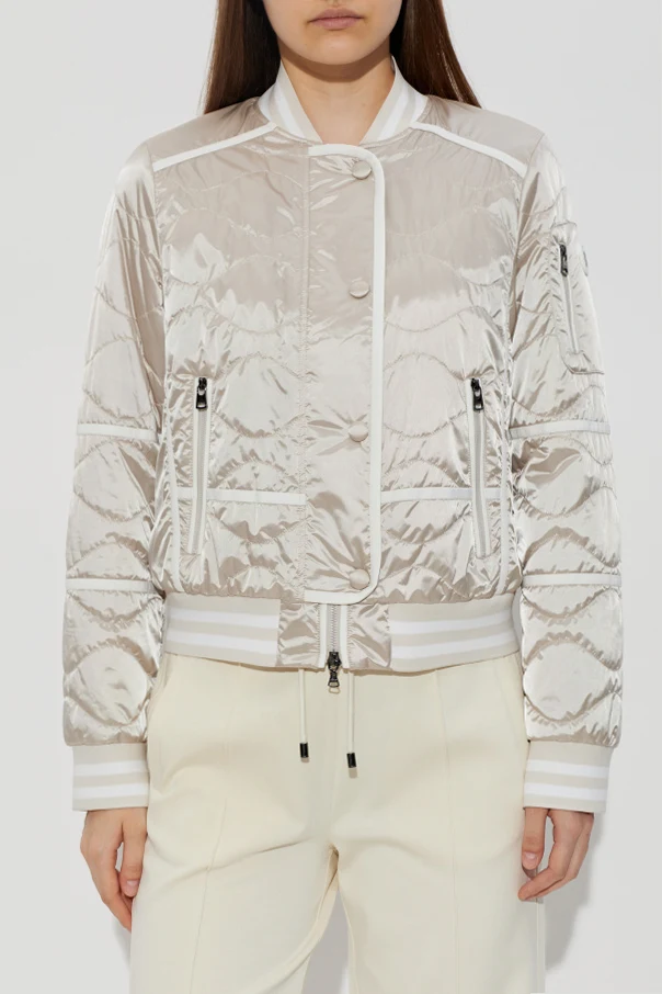 Embrace an elevated aesthetic with the ‘Lia’ Bomber Jacket by BOGNER—a timeless interpretation of classic design, defined by exquisite craftsmanship. This piece is exquisitely tailored from cream-toned, satin-finish fabric, lending a luminous sheen to its surface. The jacket’s artful, wave-patterned quilting creates a distinctive, three-dimensional texture that captures attention while ensuring refined appeal.