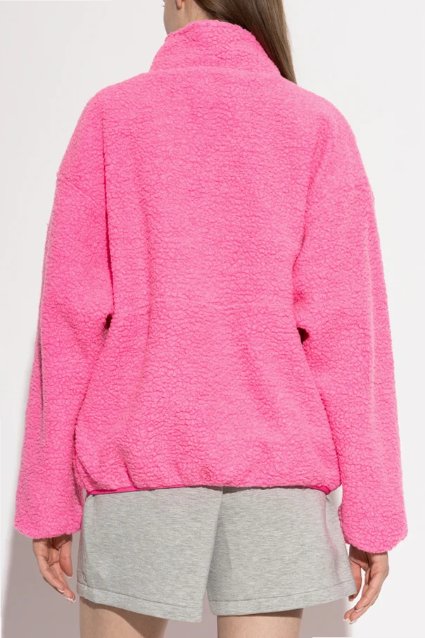 Envelop yourself in understated sophistication with this oversized women’s fleece jacket in a classic, solid color . Designed by American Vintage , it exudes refined simplicity, featuring a relaxed silhouette, gently elongated sleeves, and a straight hem that drape effortlessly for a comfortable yet elegantly casual look.