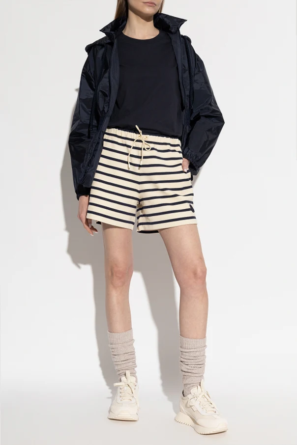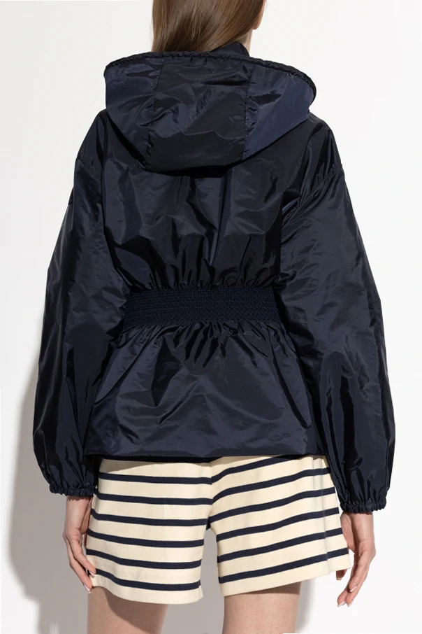The silhouette is gently oversized yet distinctly feminine, articulated by a wide, elasticated waistband that superbly defines the figure. Long sleeves finished with elastic cuffs provide both ease and protection against the chill, while the adjustable, drawstring hood and soft stand collar offer a modern, polished touch.