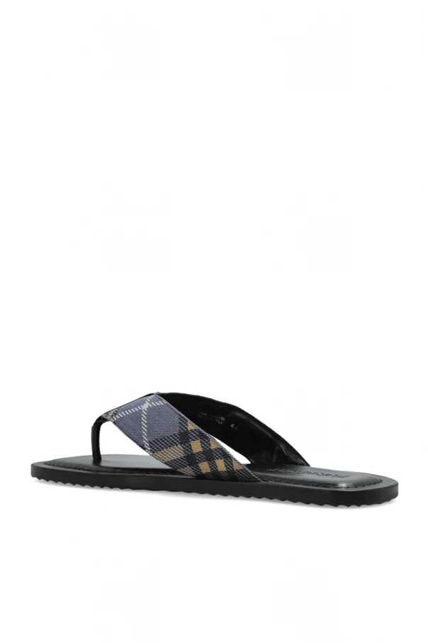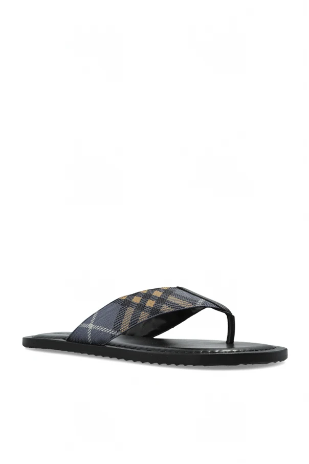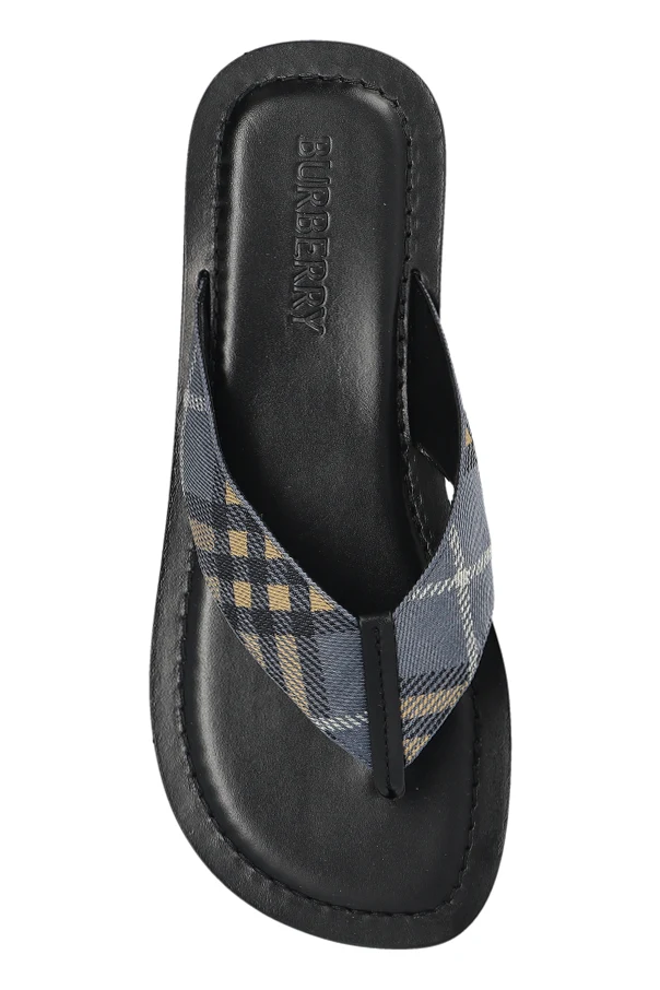 The upper strap features the iconic check pattern in dark gray, black, white, and mustard—an unmistakable hallmark of Burberry’s distinguished legacy. The footbed envelops you in pure leather luxury, while a high-quality rubber sole provides enduring comfort and resilience, seamlessly blending functional excellence with high design.