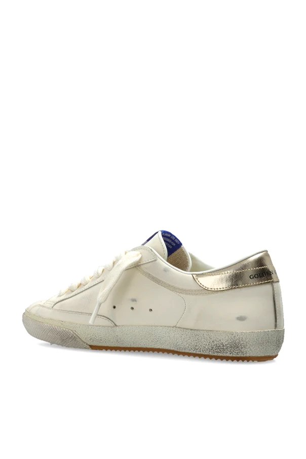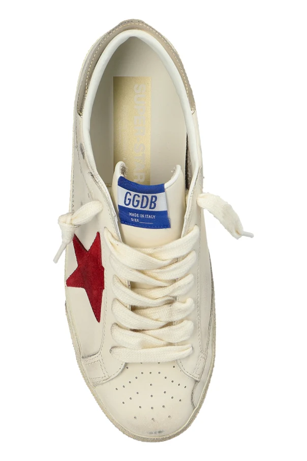Introducing the Super Star Bike With Folded Lini by Golden Goose—a refined expression of urban sophistication and distinctly Italian craftsmanship. These men's low-top sneakers captivate with their classic silhouette , rounded toe, and sleek profile. Wrapped in exquisite, matte cream leather, the upper showcases subtle perforations at the toe and side panels, ensuring optimal breathability and a sense of lightness with every step.