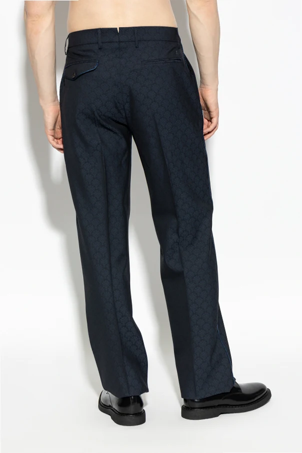 Imbued with refined sophistication, these wool tailored pants by Etro exemplify the essence of understated luxury. Crafted from exquisite wool, the fabric offers a smooth, slightly lustrous touch, enhancing the garment’s elegant silhouette. The classic straight-leg cut, defined by a precise crease and mid-rise fit, ensures timeless appeal and comfort.