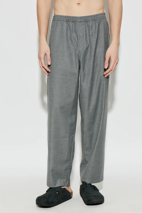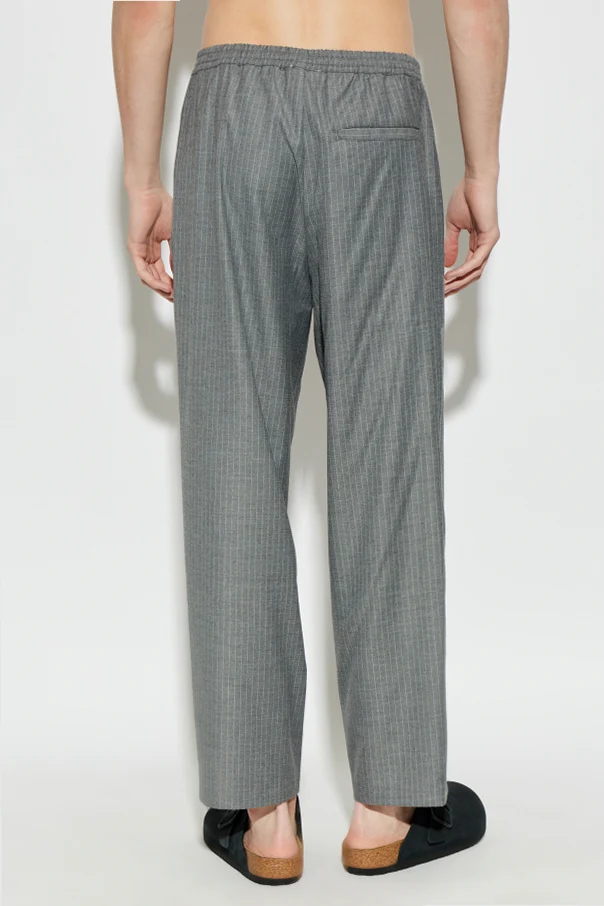 Discover refined comfort with these grey pinstripe trousers by American Vintage . Rendered in a lightweight, subtly lustrous suiting fabric, these pants exemplify modern sophistication while embracing a casual essence. The classic, straight-leg silhouette is tailored to perfection, offering a regular width throughout without any tapering for a universally flattering fit.