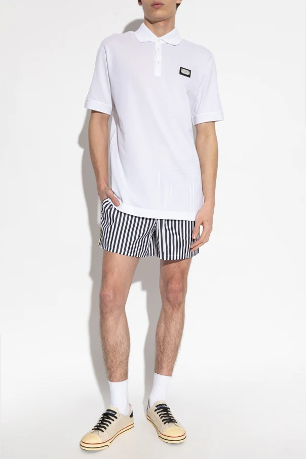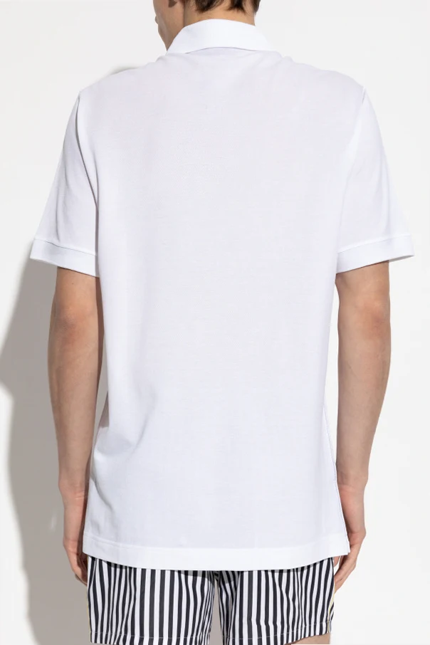 Experience timeless sophistication with this Dolce & Gabbana White Logo-Appliqué Polo Shirt , exemplifying the Italian House's unparalleled commitment to refined menswear. Crafted from premium piqué cotton, this polo boasts a distinctive textured finish that balances breathability with enduring elegance. Its silhouette embraces the classic polo form—a straight, relaxed cut with short sleeves, complemented by broad, cleanly finished ribbed cuffs and hem for a polished look throughout.