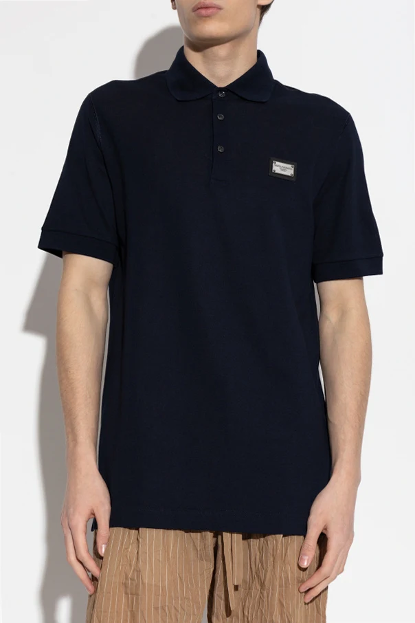 Exuding sophisticated simplicity, this Dolce & Gabbana Black Logo-Appliqué Polo Shirt epitomizes modern Italian elegance. Tailored in a timeless regular fit, the shirt is meticulously crafted from premium piqué cotton, offering signature breathability and refined texture. The deep black hue enhances its versatility and understated charm.